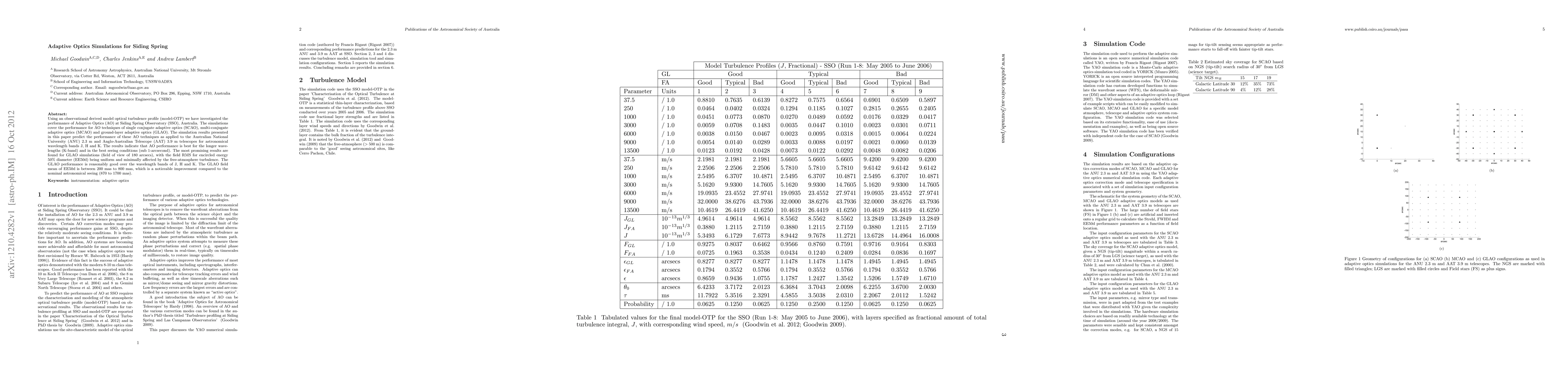 This paper simulates the performance of various Adaptive Optics (AO) techniques at Siding Spring Observatory, finding that GLAO shows the most promising results, especially in the K-band and under optimal seeing conditions. The GLAO field RMS for encircled energy 50% diameter (EE50d) is significantly improved, ranging from 200 to 800 mas compared to typical astronomical seeing.