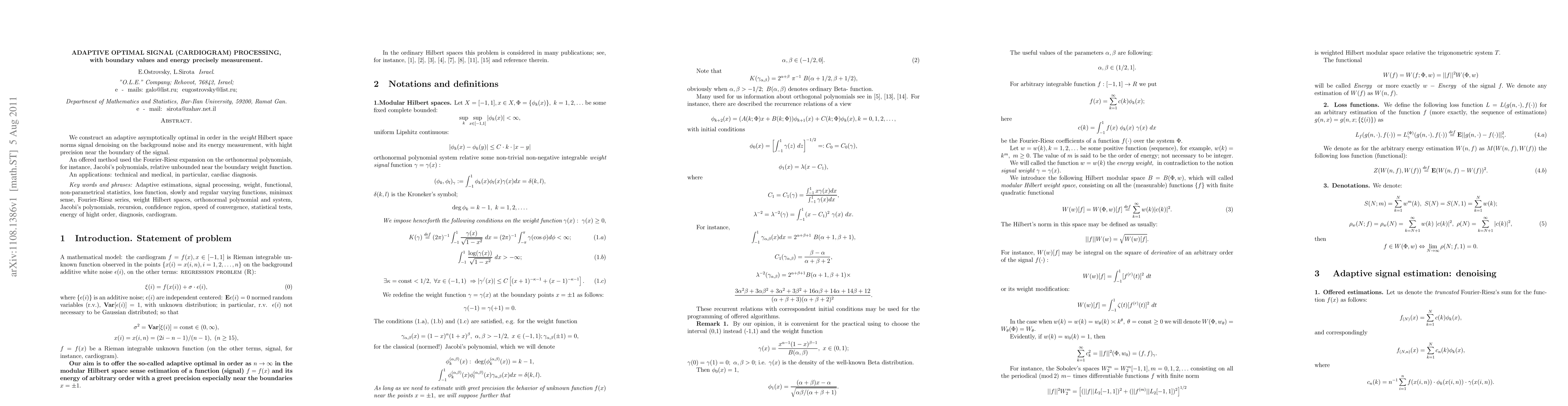 This paper proposes an adaptive, asymptotically optimal signal denoising method for cardiogram processing, utilizing Fourier-Riesz expansion on orthonormal polynomials like Jacobi's polynomials. The method achieves precise boundary value and energy measurement, with applications in technical and medical fields, especially for cardiac diagnosis.