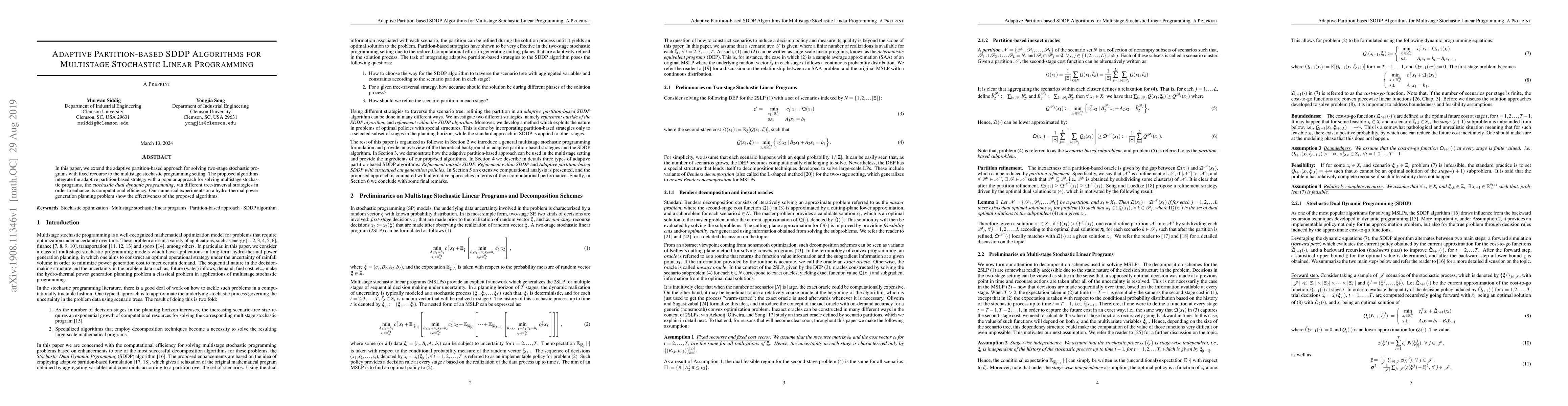 This paper proposes adaptive partition-based algorithms for multistage stochastic linear programming, integrating the adaptive partition strategy with stochastic dual dynamic programming to improve computational efficiency. Numerical results on a hydro-thermal power generation planning problem demonstrate the effectiveness of the new algorithms.