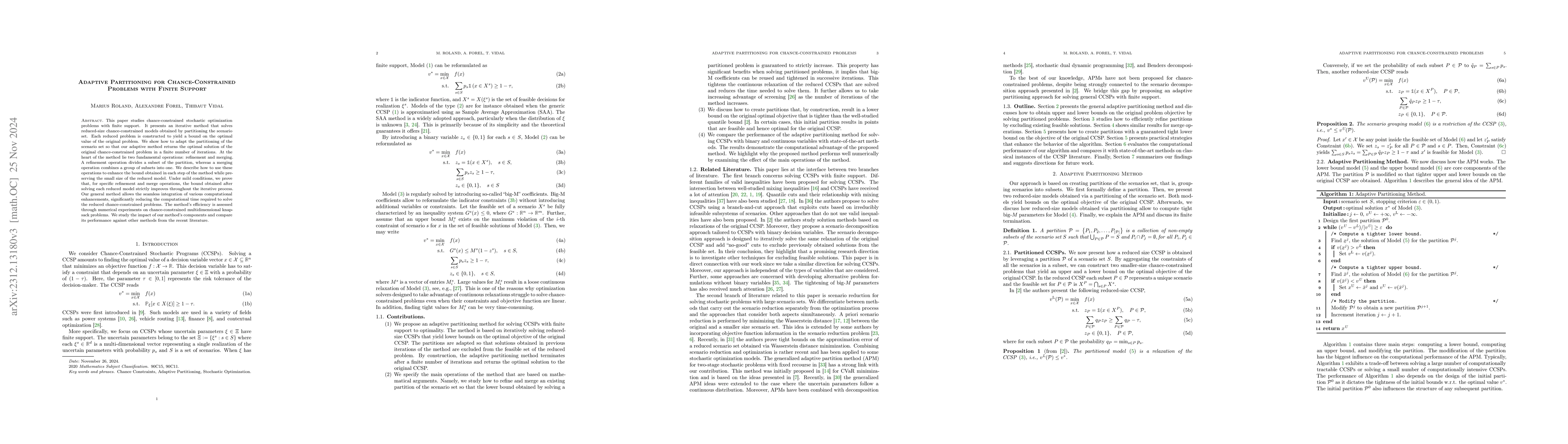 This paper proposes an adaptive partitioning method for solving chance-constrained stochastic optimization problems with finite support, iteratively refining and merging partitions to improve the solution bound while maintaining a small model size. Numerical experiments demonstrate its efficiency and effectiveness compared to existing methods.