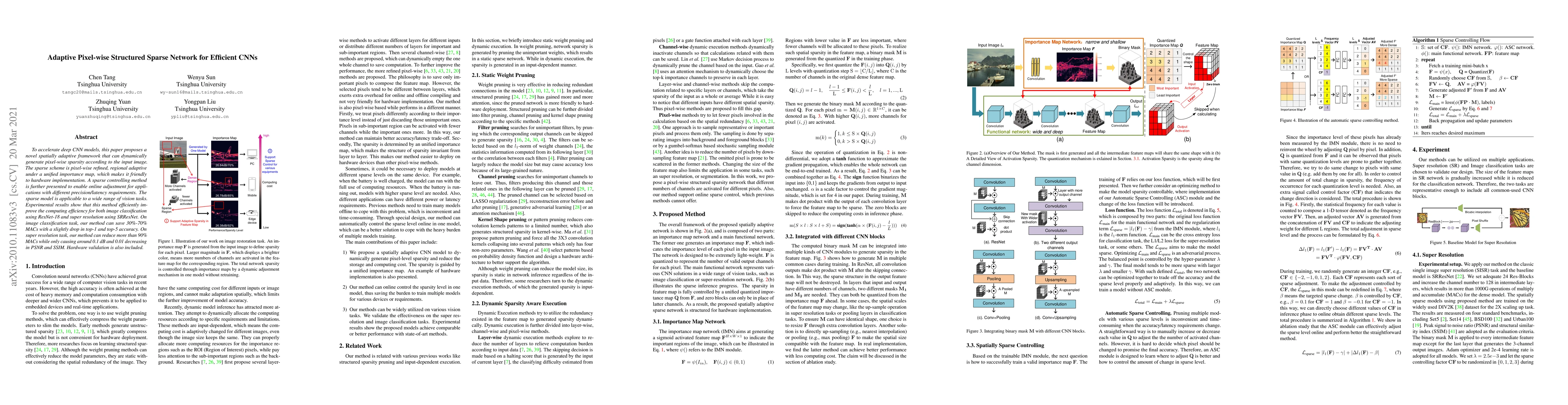 To accelerate deep CNN models, this paper proposes a novel spatially adaptive framework that can dynamically generate pixel-wise sparsity according to the input image. The sparse scheme is pixel-wise refined, regional adaptive under a unified importance map, which makes it friendly to hardware implementation. A sparse controlling method is further presented to enable online adjustment for applications with different precision/latency requirements. The sparse model is applicable to a wide range of vision tasks. Experimental results show that this method efficiently improve the computing efficiency for both image classification using ResNet-18 and super resolution using SRResNet. On image classification task, our method can save 30%-70% MACs with a slightly drop in top-1 and top-5 accuracy. On super resolution task, our method can reduce more than 90% MACs while only causing around 0.1 dB and 0.01 decreasing in PSNR and SSIM. Hardware validation is also included.