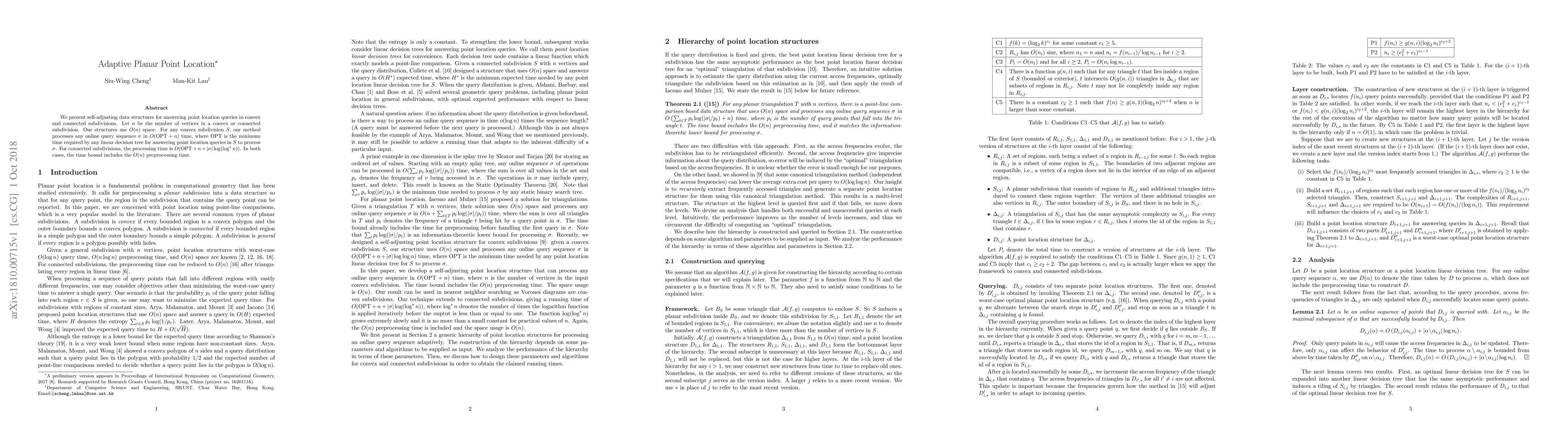 We present self-adjusting data structures for answering point location queries in convex and connected subdivisions. Let $n$ be the number of vertices in a convex or connected subdivision. Our structures use $O(n)$ space. For any convex subdivision $S$, our method processes any online query sequence $\sigma$ in $O(\mathrm{OPT} + n)$ time, where $\mathrm{OPT}$ is the minimum time required by any linear decision tree for answering point location queries in $S$ to process $\sigma$. For connected subdivisions, the processing time is $O(\mathrm{OPT} + n + |\sigma|\log(\log^* n))$. In both cases, the time bound includes the $O(n)$ preprocessing time.