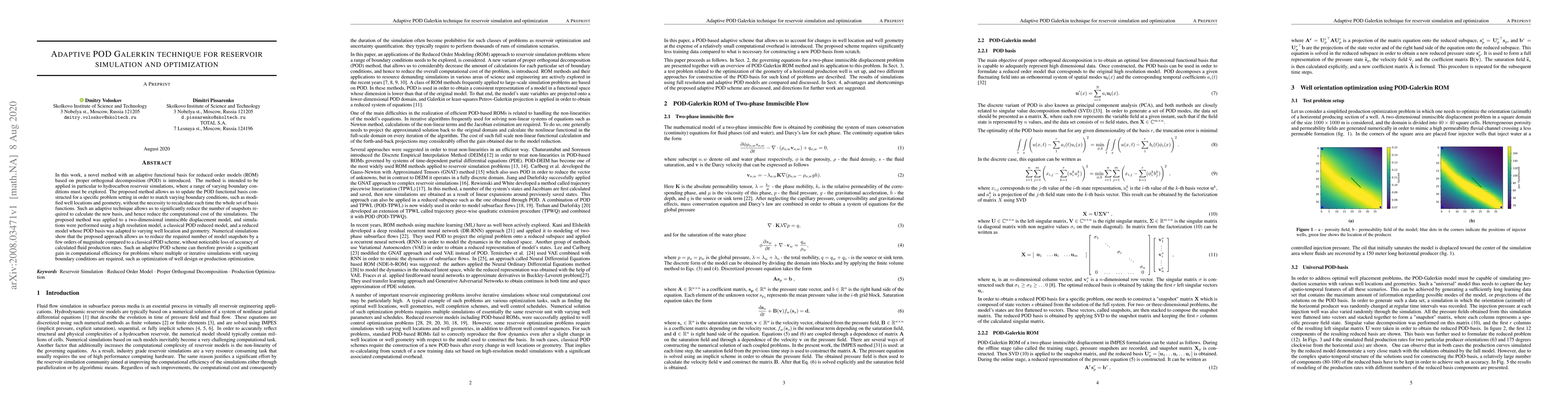 In this work, a novel method with an adaptive functional basis for reduced order models (ROM) based on proper orthogonal decomposition (POD) is introduced. The method is intended to be applied in particular to hydrocarbon reservoir simulations, where a range of varying boundary conditions must be explored. The proposed method allows us to update the POD functional basis constructed for a specific problem setting in order to match varying boundary conditions, such as modified well locations and geometry, without the necessity to recalculate each time the whole set of basis functions. Such an adaptive technique allows us to significantly reduce the number of snapshots required to calculate the new basis, and hence reduce the computational cost of the simulations. The proposed method was applied to a two-dimensional immiscible displacement model, and simulations were performed using a high resolution model, a classical POD reduced model, and a reduced model whose POD basis was adapted to varying well location and geometry. Numerical simulations show that the proposed approach allows us to reduce the required number of model snapshots by a few orders of magnitude compared to a classical POD scheme, without noticeable loss of accuracy of calculated fluid production rates. Such an adaptive POD scheme can therefore provide a significant gain in computational efficiency for problems where multiple or iterative simulations with varying boundary conditions are required, such as optimization of well design or production optimization.