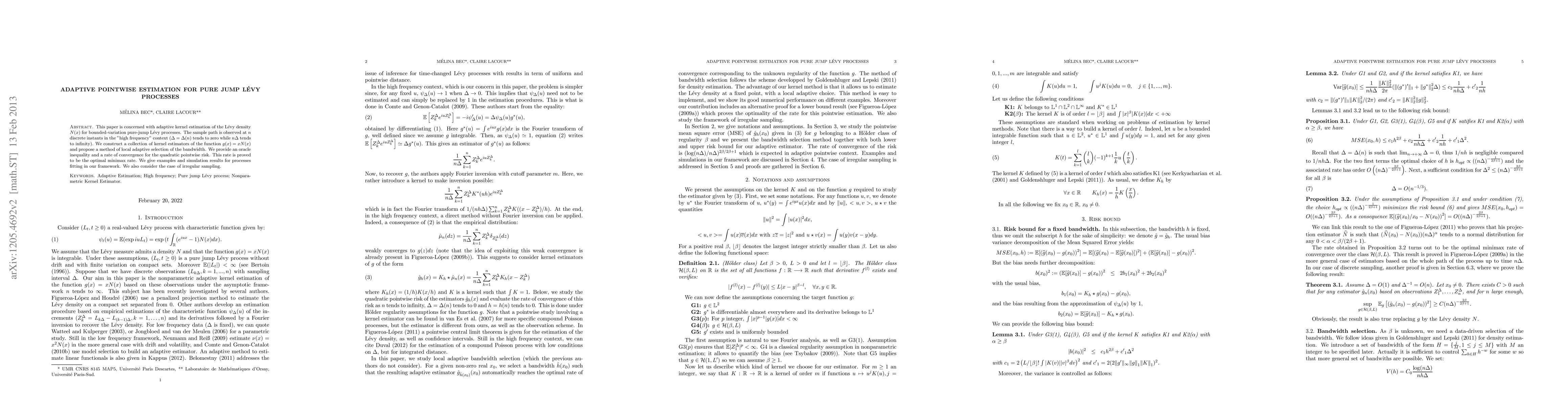 This paper develops adaptive kernel estimators for the Lévy density of pure jump Lévy processes observed at high-frequency intervals, proposing a method for local adaptive bandwidth selection. It establishes an optimal convergence rate for the quadratic pointwise risk and provides simulation results for various processes.