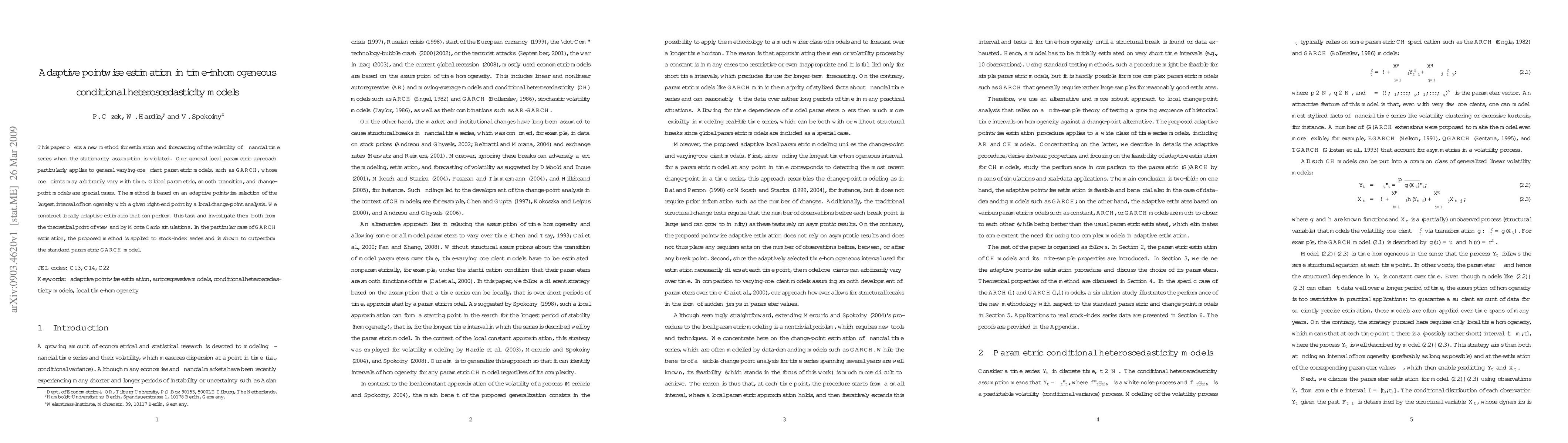 This paper offers a new method for estimation and forecasting of the volatility of financial time series when the stationarity assumption is violated. Our general local parametric approach particularly applies to general varying-coefficient parametric models, such as GARCH, whose coefficients may arbitrarily vary with time. Global parametric, smooth transition, and change-point models are special cases. The method is based on an adaptive pointwise selection of the largest interval of homogeneity with a given right-end point by a local change-point analysis. We construct locally adaptive estimates that can perform this task and investigate them both from the theoretical point of view and by Monte Carlo simulations. In the particular case of GARCH estimation, the proposed method is applied to stock-index series and is shown to outperform the standard parametric GARCH model.