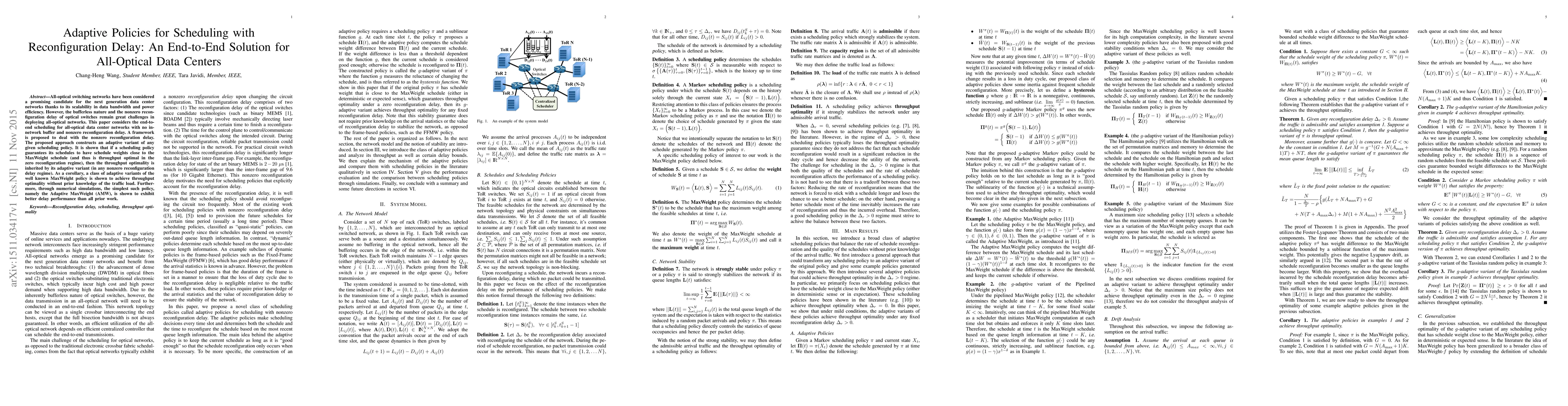 A new framework is proposed to address the challenges of all-optical data center networks, which includes a method for adaptive policies that can handle reconfiguration delays, ensuring throughput optimality in various scenarios.
