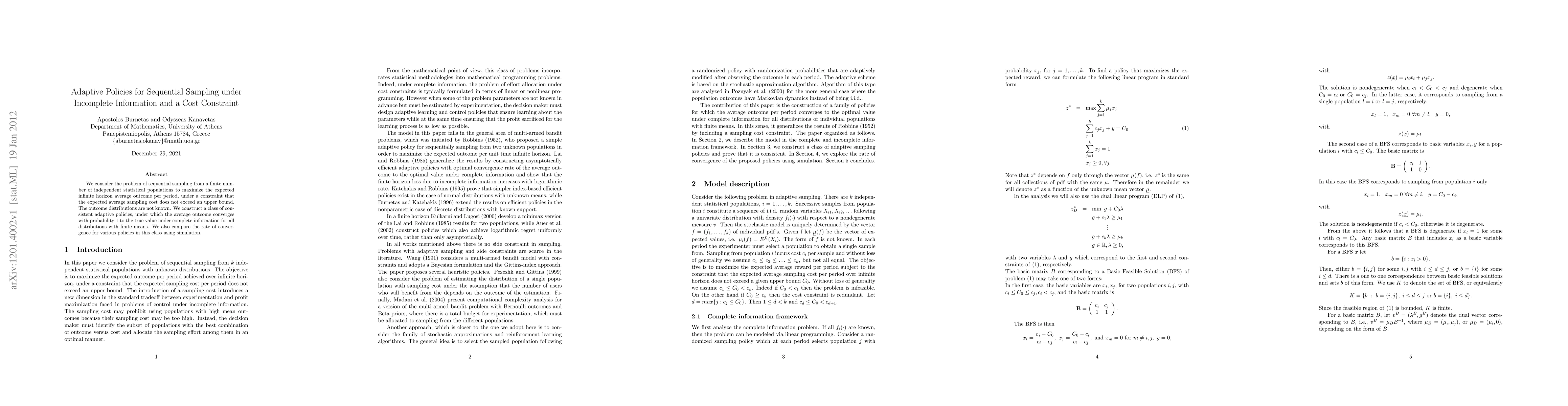 Researchers developed adaptive policies for sequential sampling under uncertainty to maximize expected outcomes while adhering to a cost constraint. These policies ensure the average outcome converges to the true value with probability 1.
