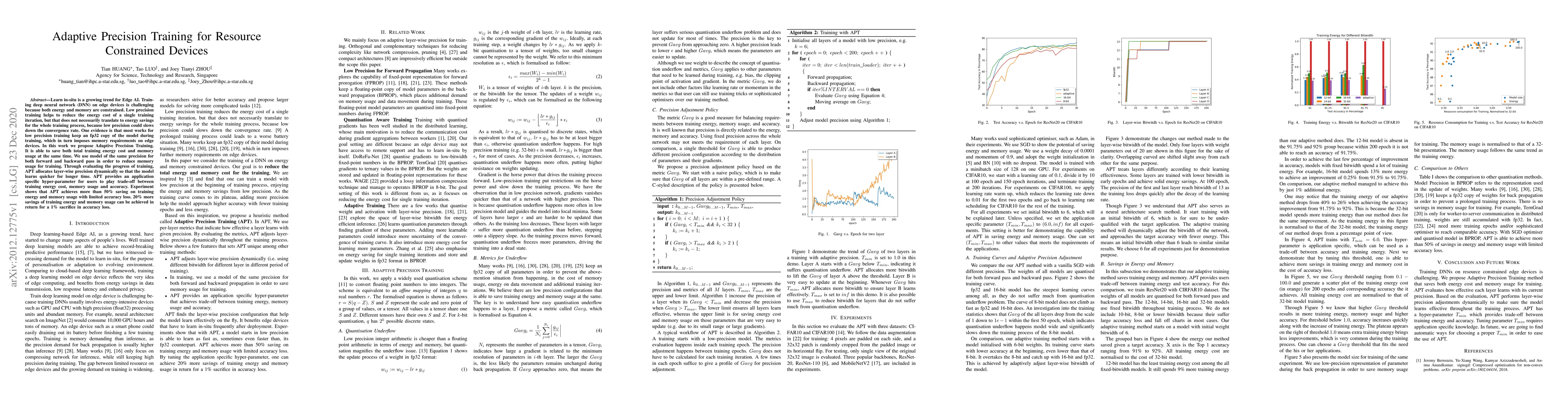 Researchers propose Adaptive Precision Training to reduce energy and memory usage in training deep neural networks on edge devices. This approach saves over 50% of energy and memory while maintaining limited accuracy loss.