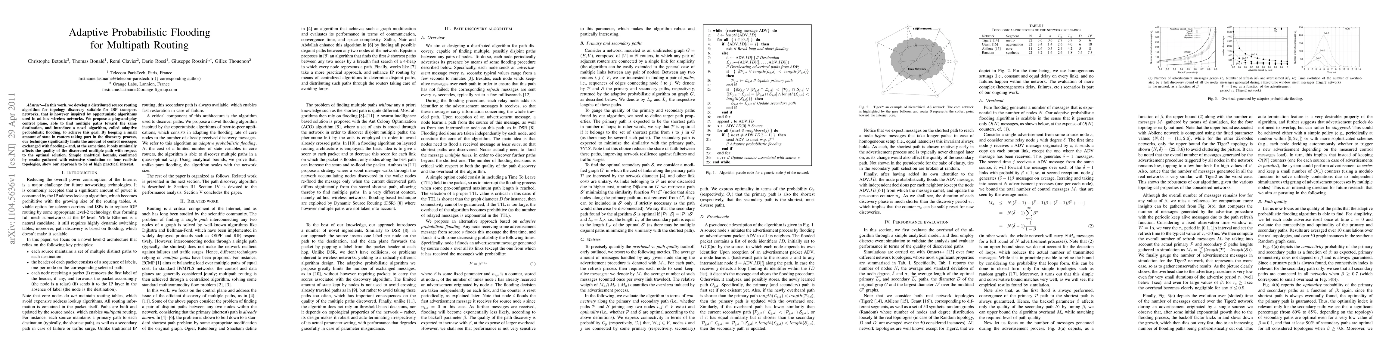 In this work, we develop a distributed source routing algorithm for topology discovery suitable for ISP transport networks, that is however inspired by opportunistic algorithms used in ad hoc wireless networks. We propose a plug-and-play control plane, able to find multiple paths toward the same destination, and introduce a novel algorithm, called adaptive probabilistic flooding, to achieve this goal. By keeping a small amount of state in routers taking part in the discovery process, our technique significantly limits the amount of control messages exchanged with flooding -- and, at the same time, it only minimally affects the quality of the discovered multiple path with respect to the optimal solution. Simple analytical bounds, confirmed by results gathered with extensive simulation on four realistic topologies, show our approach to be of high practical interest.