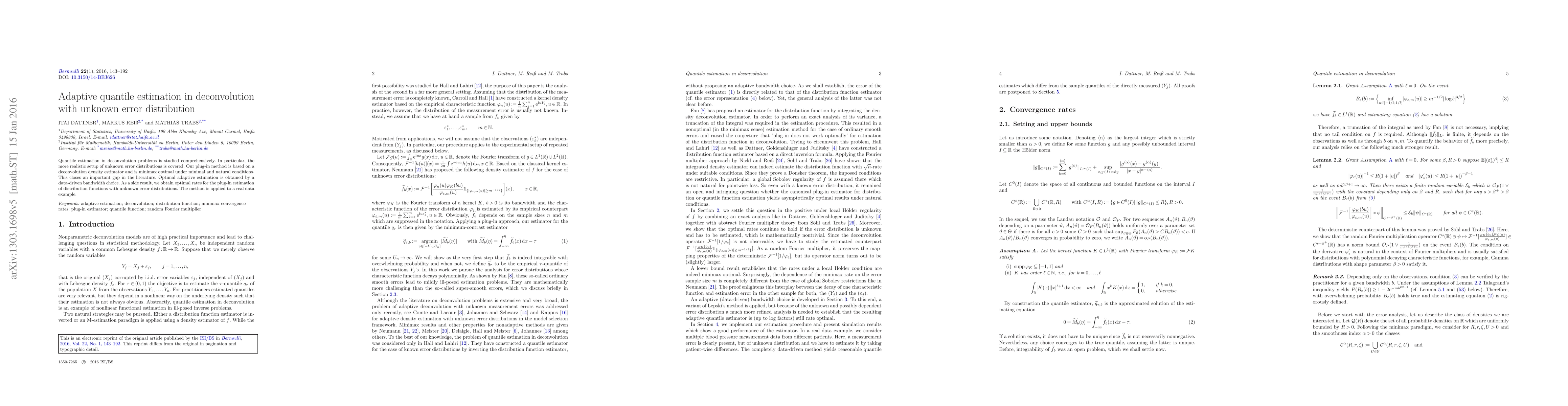 This paper presents an adaptive quantile estimation method for deconvolution problems with unknown error distributions, achieving minimax optimality through a data-driven bandwidth choice. The proposed plug-in method fills a gap in existing literature and is demonstrated with a real data example.