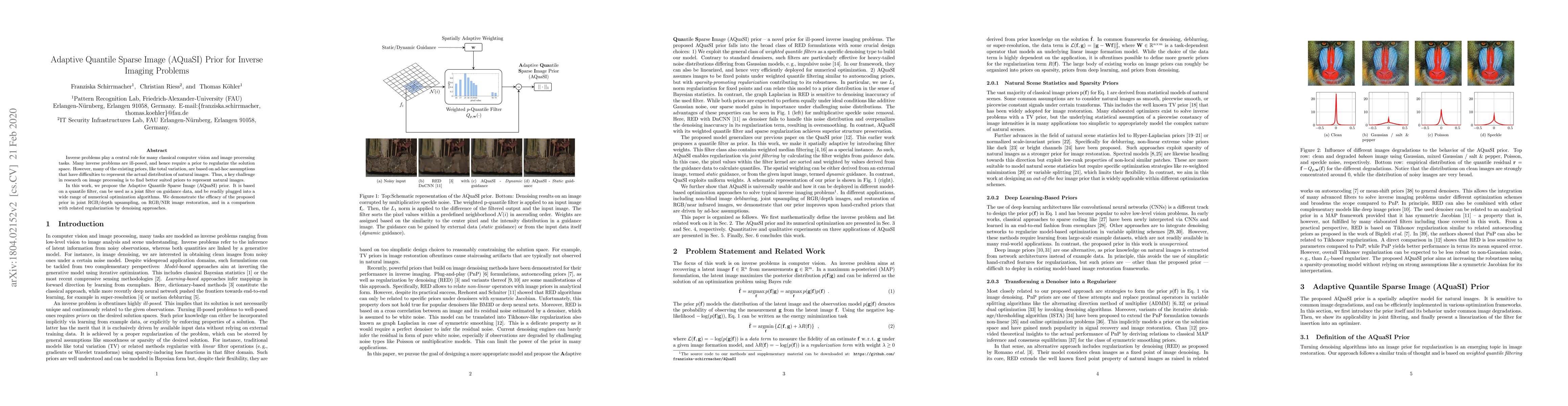 A new image prior called Adaptive Quantile Sparse Image (AQuaSI) is proposed to improve inverse imaging tasks, offering a flexible and effective regularization method for natural images.
