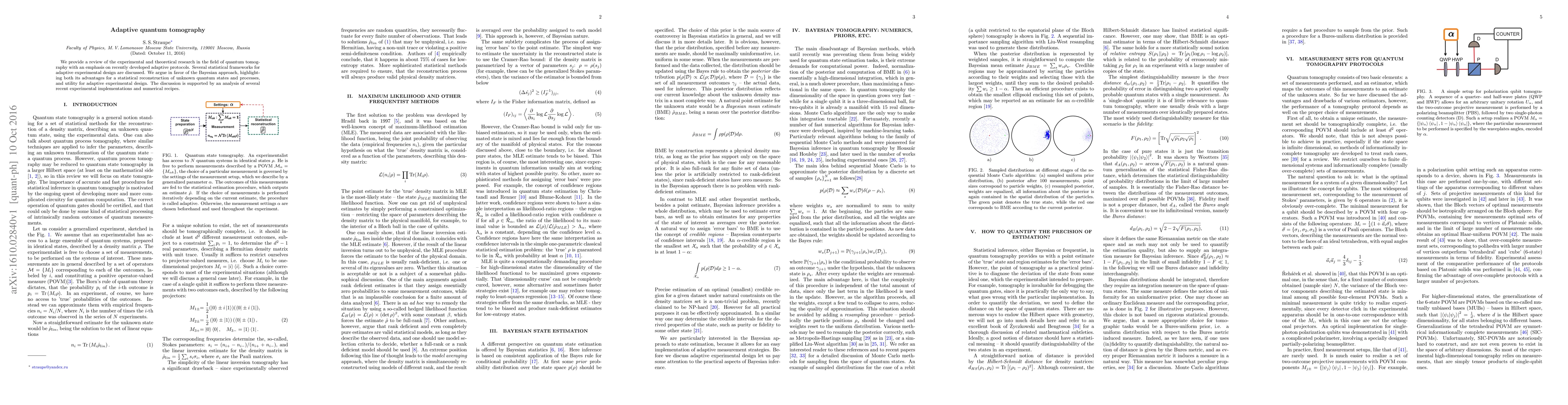 This paper reviews experimental and theoretical research on adaptive quantum tomography, highlighting the Bayesian approach as a promising method for statistical reconstruction and adaptive design, supported by recent experiments and numerical recipes.