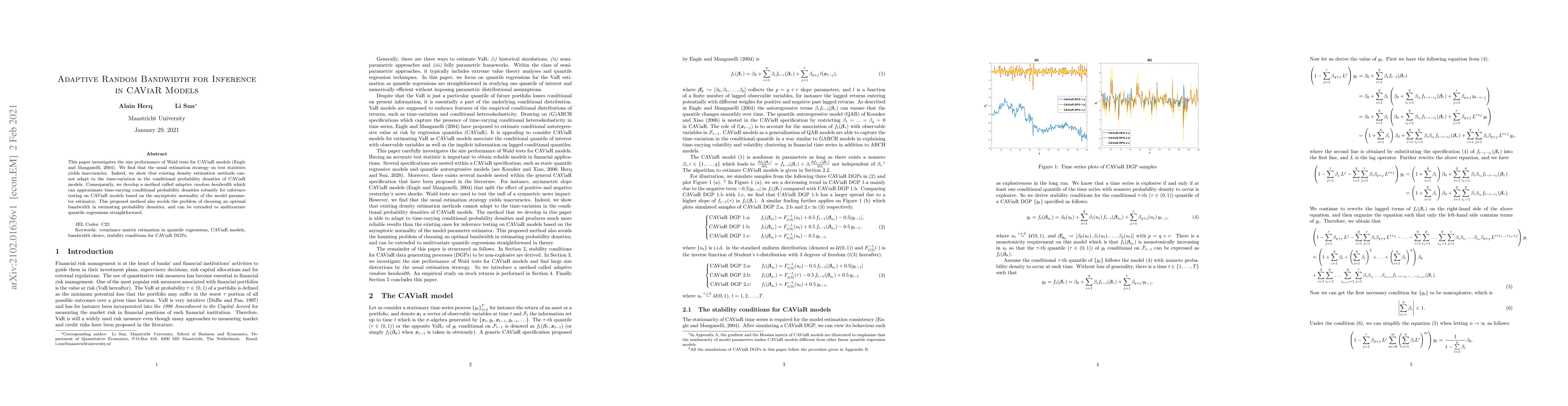 Researchers developed a method to adaptively adjust bandwidth for testing in CAViaR models, overcoming errors caused by time-varying probability densities. This new approach enables robust inference without requiring optimal bandwidth selection.