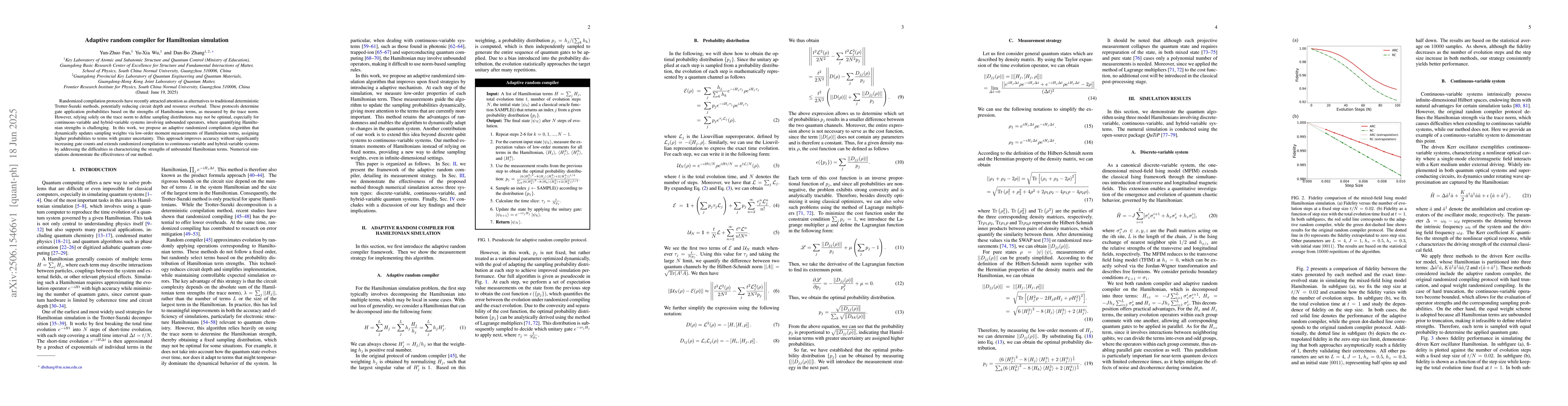 Randomized compilation protocols have recently attracted attention as alternatives to traditional deterministic Trotter-Suzuki methods, potentially reducing circuit depth and resource overhead. These protocols determine gate application probabilities based on the strengths of Hamiltonian terms, as measured by the trace norm. However, relying solely on the trace norm to define sampling distributions may not be optimal, especially for continuous-variable and hybrid-variable systems involving unbounded operators, where quantifying Hamiltonian strengths is challenging. In this work, we propose an adaptive randomized compilation algorithm that dynamically updates sampling weights via low-order moment measurements of Hamiltonian terms, assigning higher probabilities to terms with greater uncertainty. This approach improves accuracy without significantly increasing gate counts and extends randomized compilation to continuous-variable and hybrid-variable systems by addressing the difficulties in characterizing the strengths of unbounded Hamiltonian terms. Numerical simulations demonstrate the effectiveness of our method.