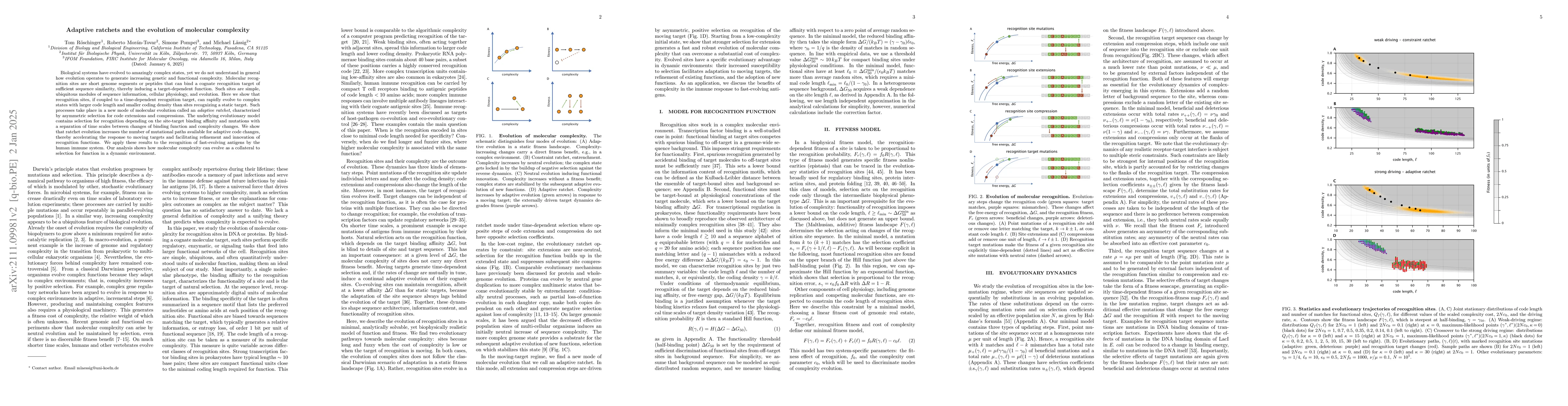 This paper demonstrates that adaptive ratchets can drive the evolution of molecular recognition sites to complex states, increasing genetic and functional complexity through dynamic selection pressures. The study shows that coupling recognition sites to time-dependent targets enhances evolutionary adaptation, leading to larger code lengths and facilitating the refinement and innovation of recognition functions.