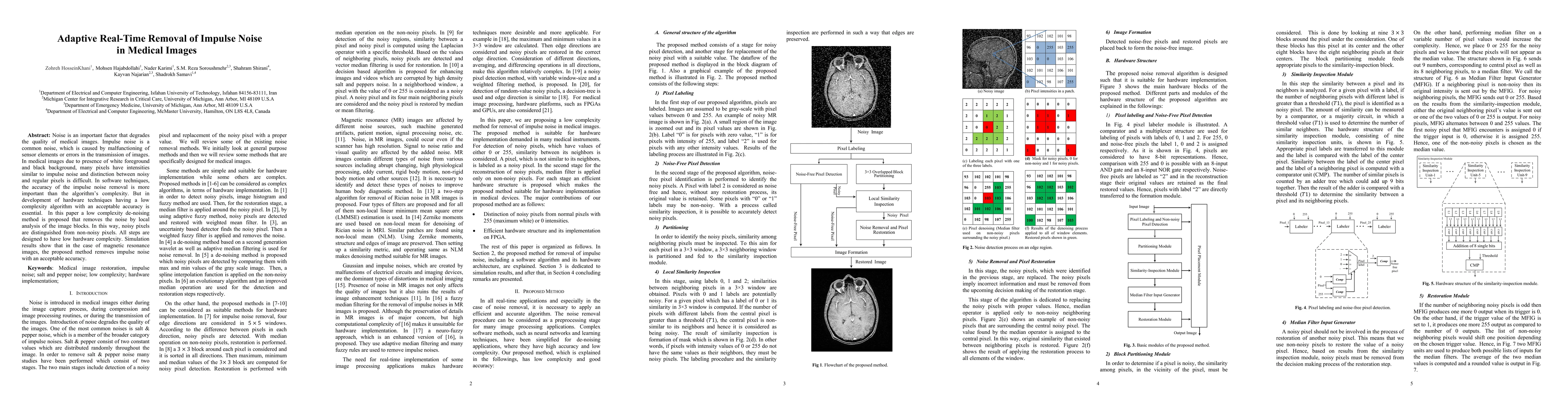 This paper proposes a low-complexity method to remove impulse noise from medical images using local image block analysis, achieving acceptable accuracy in simulations.