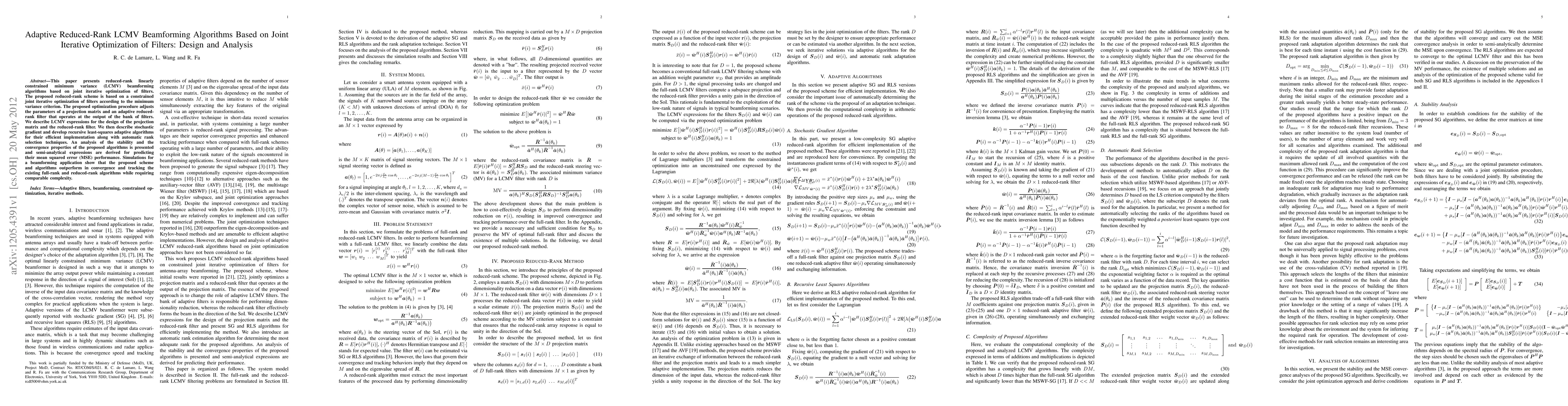 This paper proposes adaptive reduced-rank LCMV beamforming algorithms based on joint iterative optimization of filters, featuring efficient implementation via stochastic gradient and recursive least-squares methods, and demonstrating superior performance in convergence and tracking compared to existing methods.
