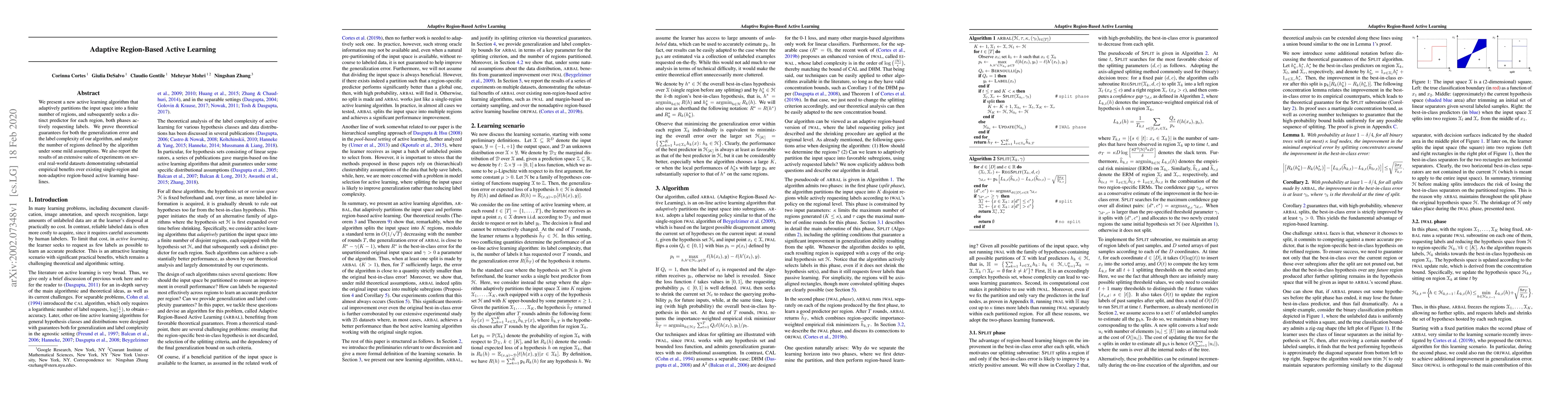 This research paper introduces an adaptive region-based active learning algorithm that improves performance on real-world datasets by partitioning the input space into regions and selecting distinct predictors for each, showing substantial empirical benefits over existing baselines.
