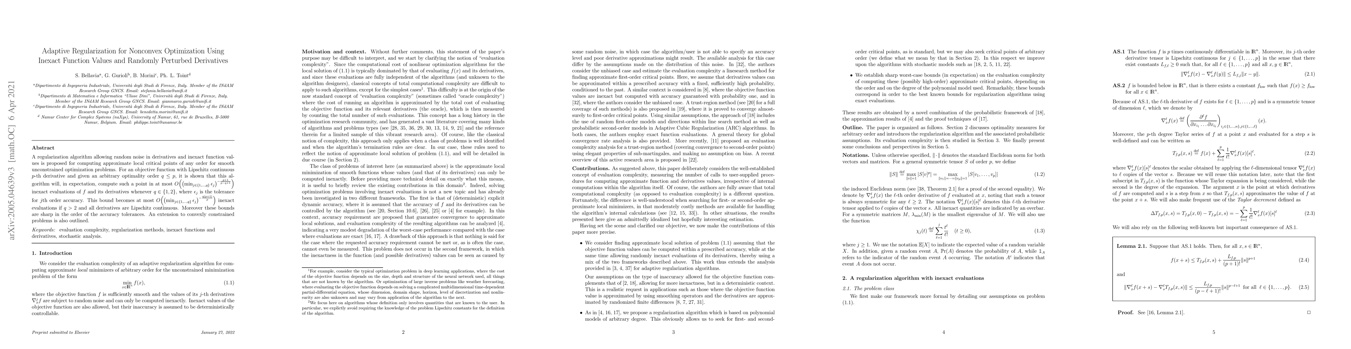 This paper proposes an adaptive regularization algorithm for nonconvex optimization that accommodates noisy derivatives and inexact function values to find approximate local critical points of any order. The algorithm achieves optimal convergence rates based on the desired accuracy tolerances, with sharp bounds on the number of required evaluations.