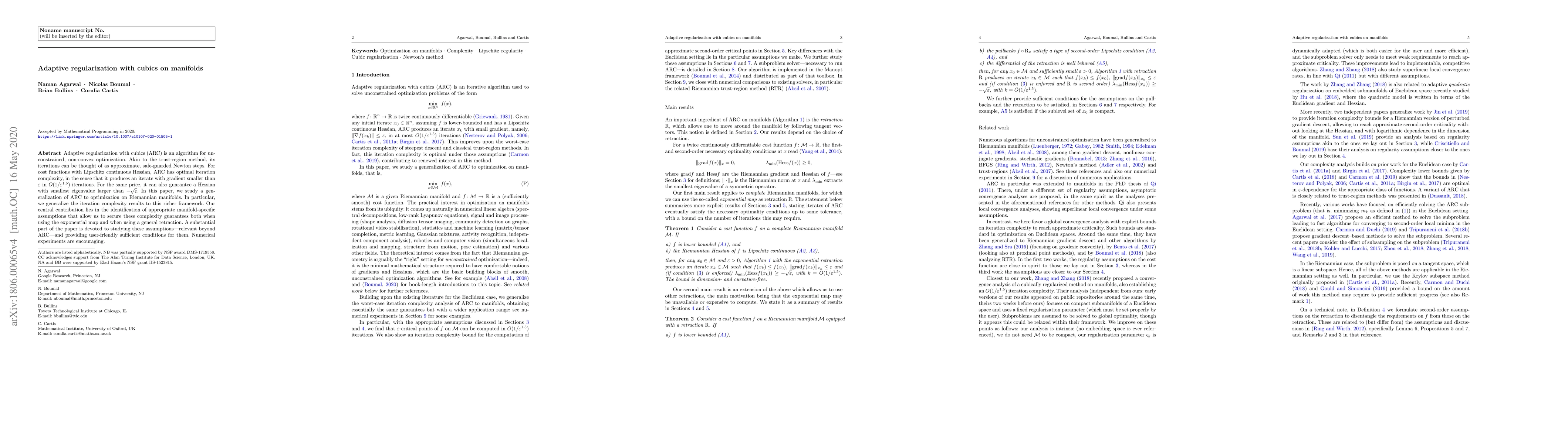 Researchers develop a method for optimizing on Riemannian manifolds that guarantees optimal iteration complexity and eigenvalue conditions using adaptive regularization with cubics.