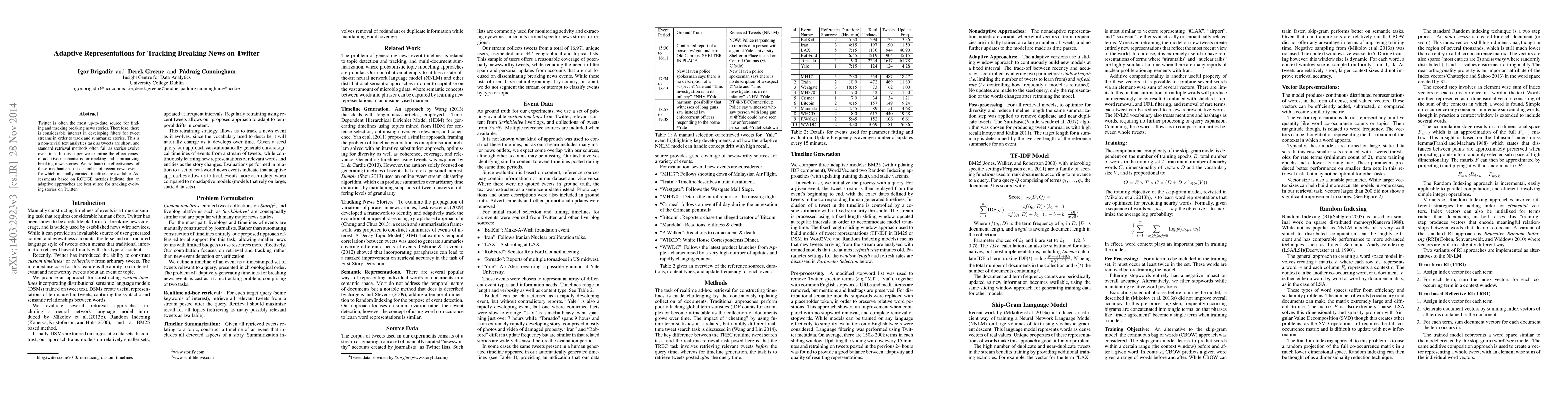 This paper investigates adaptive mechanisms for tracking and summarizing breaking news on Twitter, demonstrating their effectiveness through evaluations on recent news events using ROUGE metrics, which show that adaptive approaches outperform standard methods.