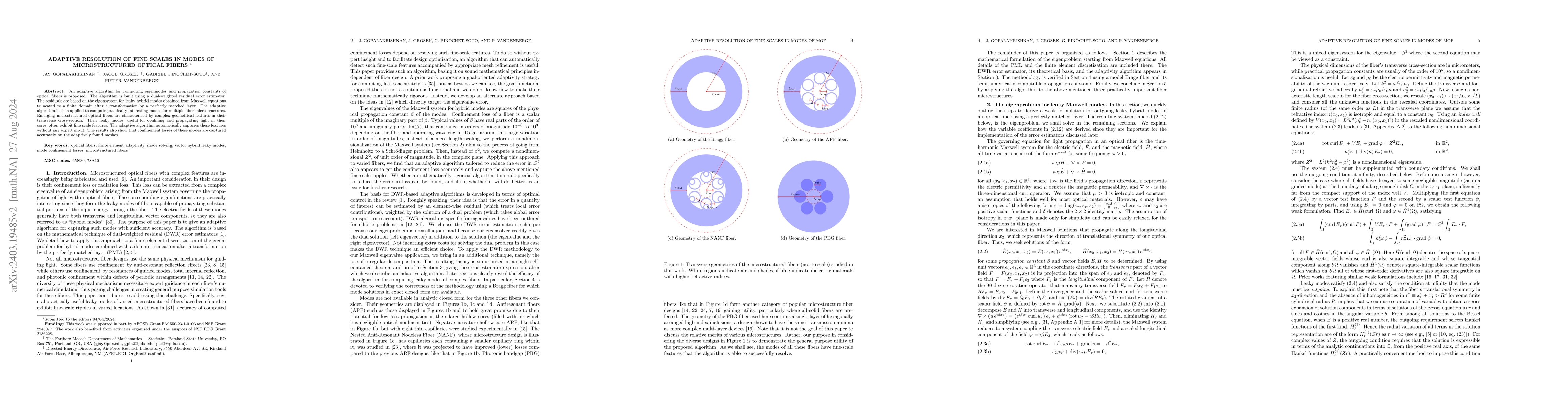 The paper proposes an adaptive algorithm to accurately compute eigenmodes and propagation constants of complex microstructured optical fibers, capturing fine-scale features of their leaky modes without expert input and achieving accurate confinement losses.