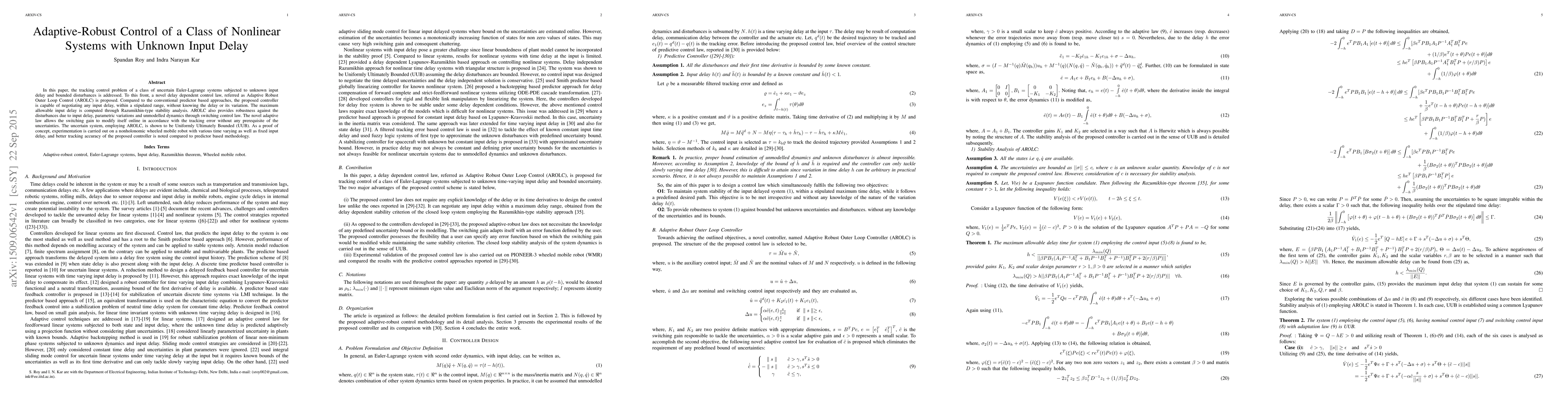 The paper introduces a novel Adaptive Robust Outer Loop Control (AROLC) method for handling uncertain nonlinear systems with unknown input delays and disturbances, providing a robust and adaptive control solution.