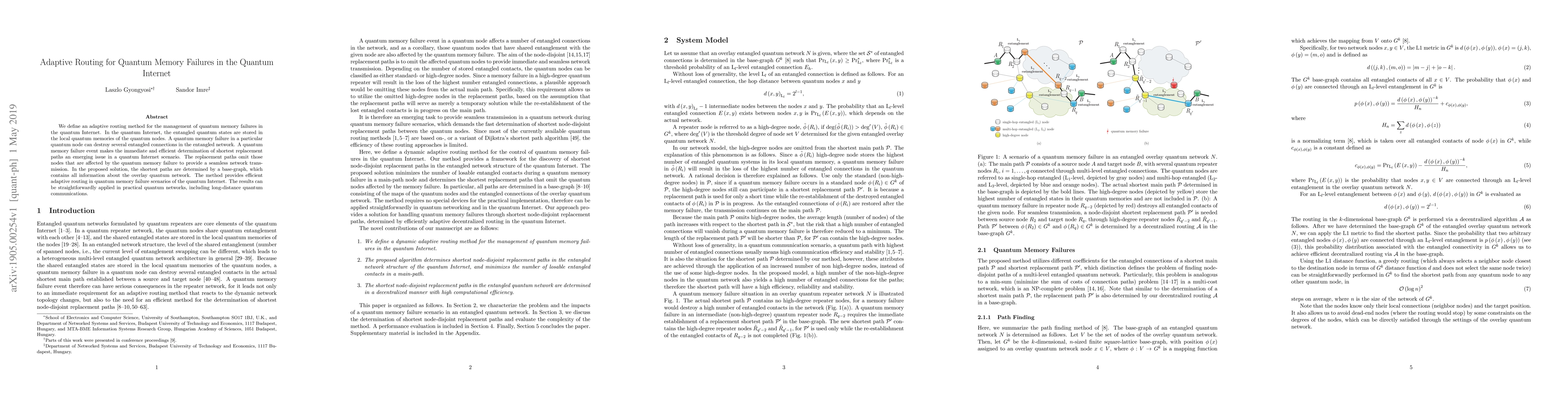 This paper proposes an adaptive routing method to manage quantum memory failures in the quantum Internet, ensuring efficient replacement paths that bypass failed nodes and maintain seamless network transmission. The method utilizes a base-graph containing all overlay network information to determine the shortest paths for routing.