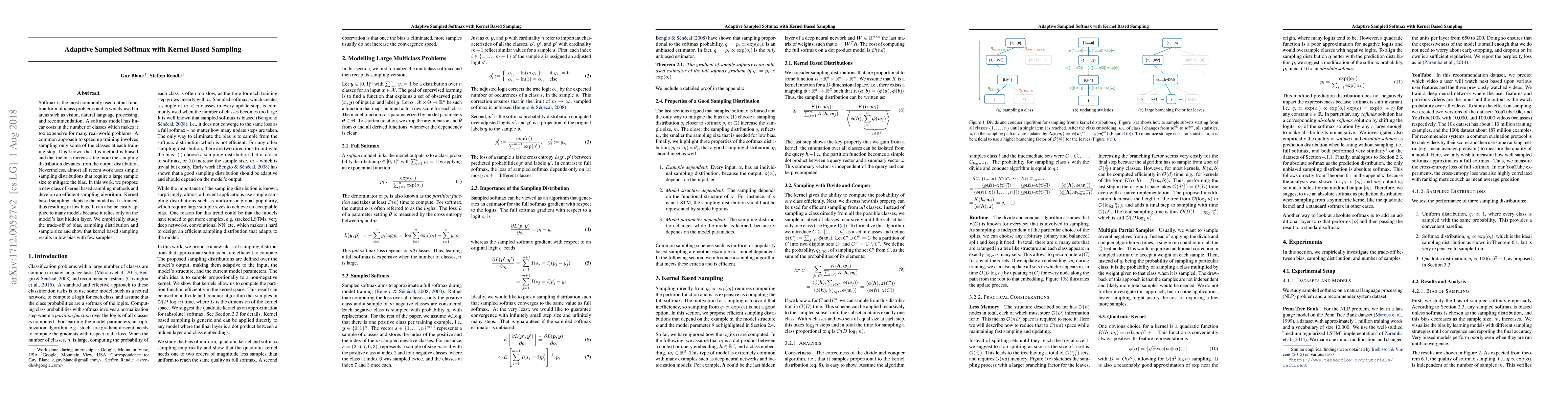 This paper proposes adaptive kernel-based sampling methods to improve the efficiency of the softmax function in multiclass problems, reducing training costs and bias. The method adapts during training, resulting in low bias with fewer samples compared to traditional sampling techniques.