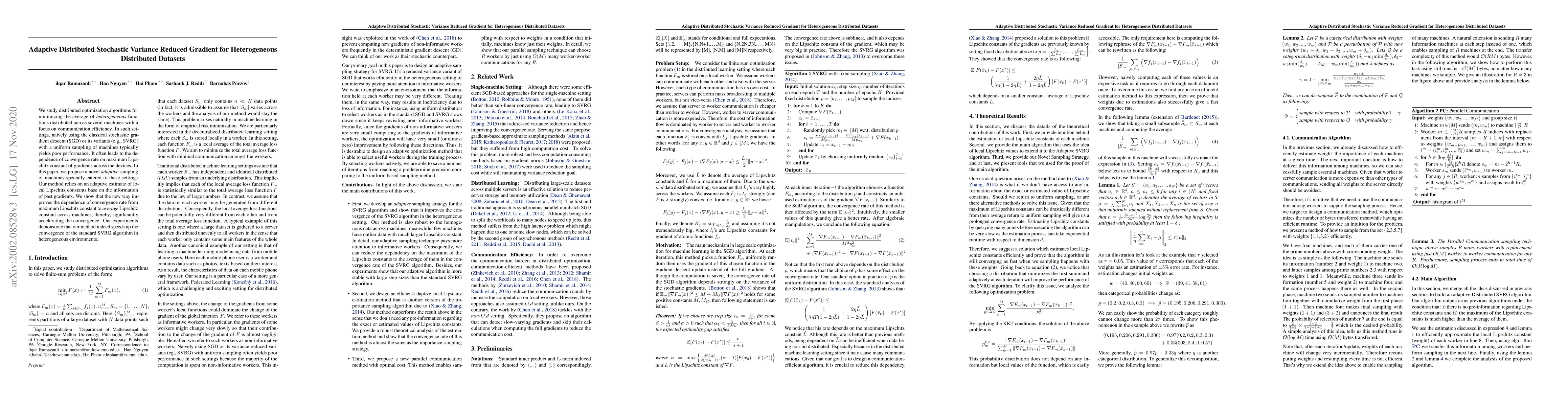 Researchers propose an adaptive sampling method to improve convergence in distributed optimization algorithms for heterogeneous datasets, reducing dependence on maximum Lipschitz constant and accelerating convergence.
