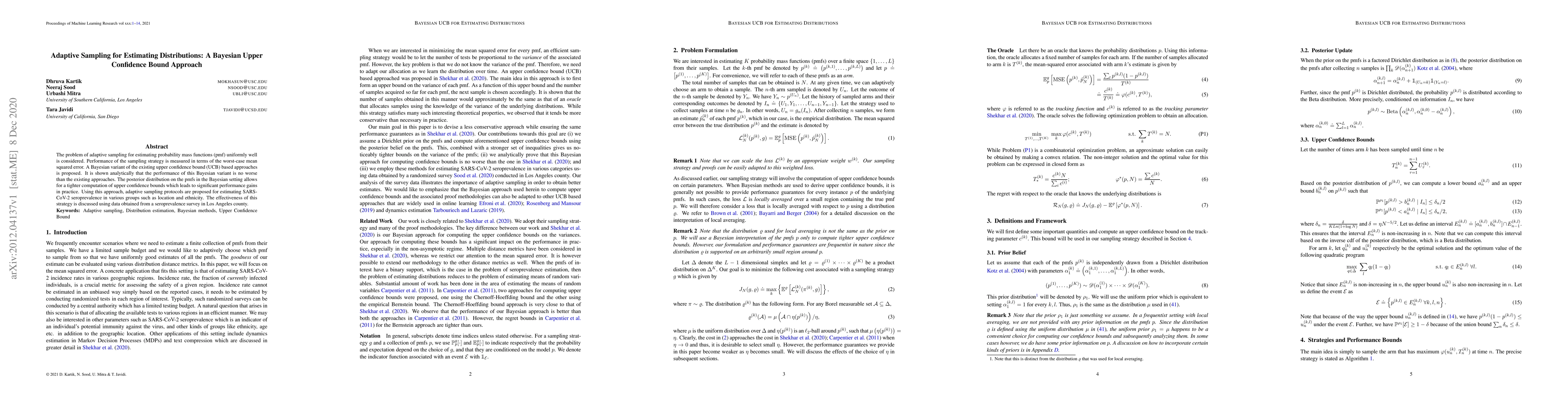 A new Bayesian approach to adaptive sampling for estimating probability distributions is proposed, offering improved performance in practice, with potential applications in seroprevalence surveys and other fields.