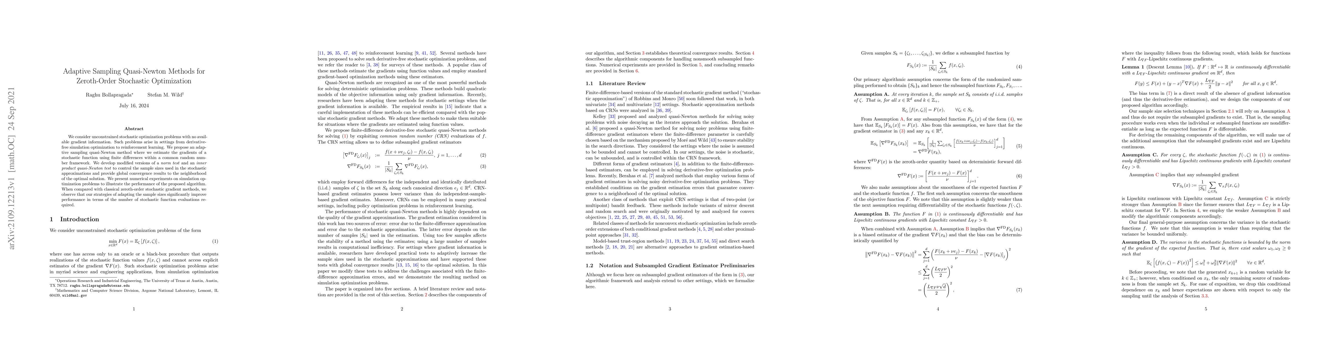 This paper proposes an adaptive sampling quasi-Newton method for zeroth-order stochastic optimization, estimating gradients via finite differences. The method adapts sample sizes using modified quasi-Newton tests, achieving improved performance over classical methods in terms of function evaluations.