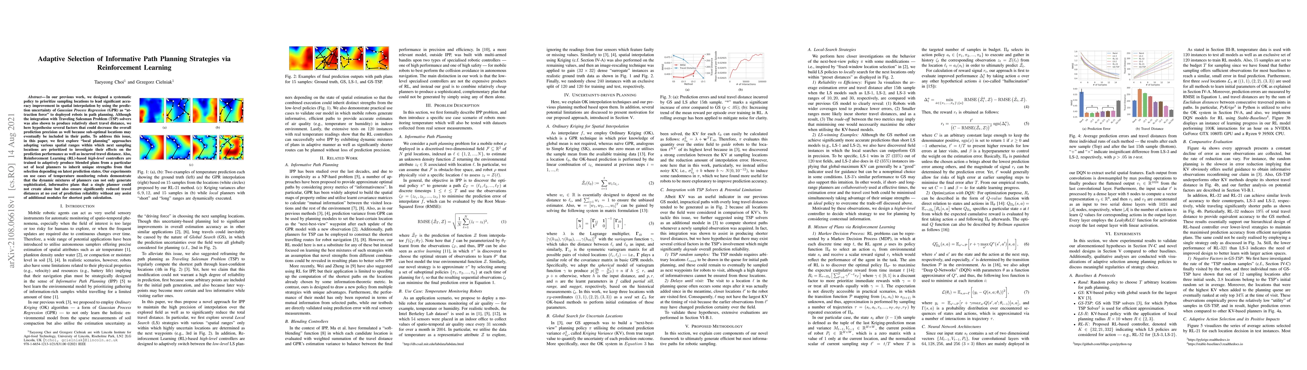 This paper explores adaptive path planning strategies using Reinforcement Learning to enhance spatial interpolation accuracy in robots. It combines local planning approaches with RL-based controllers to adaptively blend plans, achieving improved prediction performance and reduced travel distances without compromising reliability.