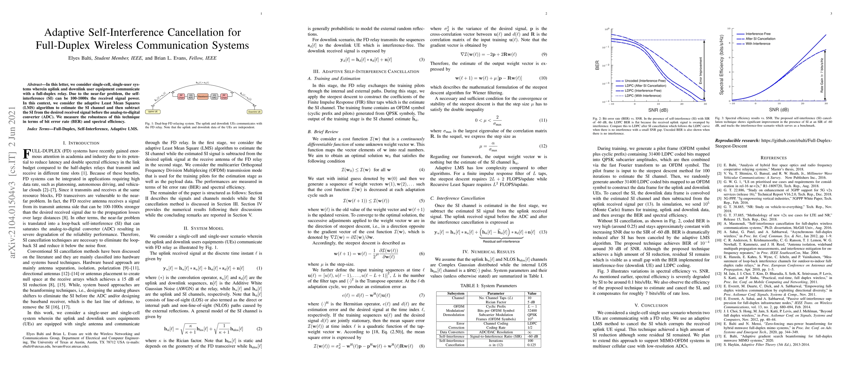 Researchers developed an adaptive method to cancel self-interference in full-duplex wireless communication systems, achieving improved bit error rates and spectral efficiency.