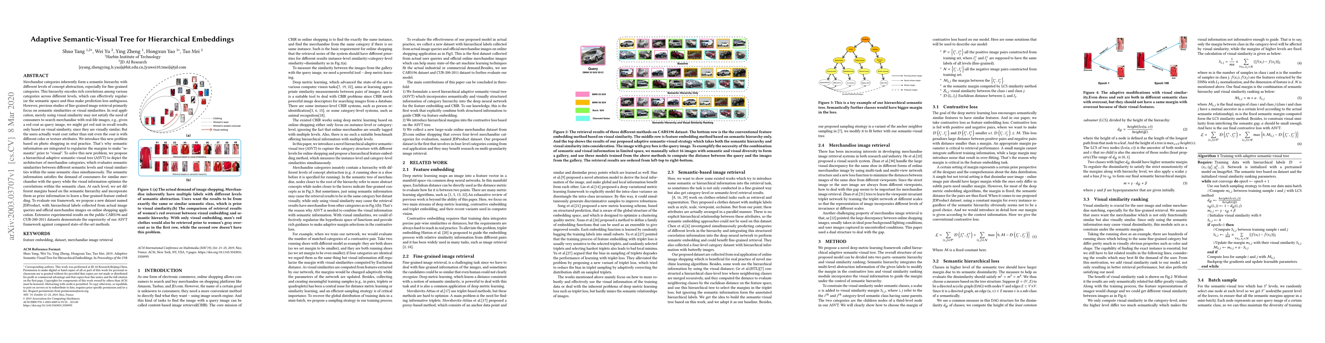 This paper proposes an Adaptive Semantic-Visual Tree (ASVT) for hierarchical embeddings to improve fine-grained image retrieval by integrating semantic and visual information. The ASVT framework uses semantic hierarchies to prioritize semantic similarities over visual ones, addressing the issue of retrieving incorrect items based solely on visual similarity.