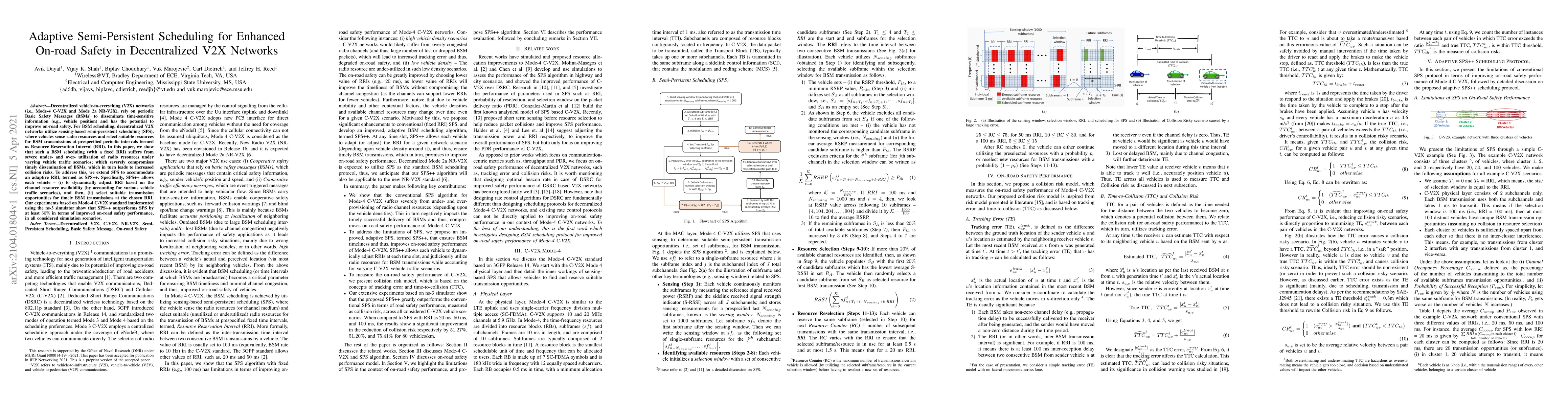 This paper proposes an adaptive semi-persistent scheduling (SPS++) for decentralized V2X networks to enhance on-road safety by dynamically adjusting resource reservation intervals based on traffic scenarios. Experiments show that SPS++ improves safety performance by at least 50% compared to traditional fixed interval scheduling.