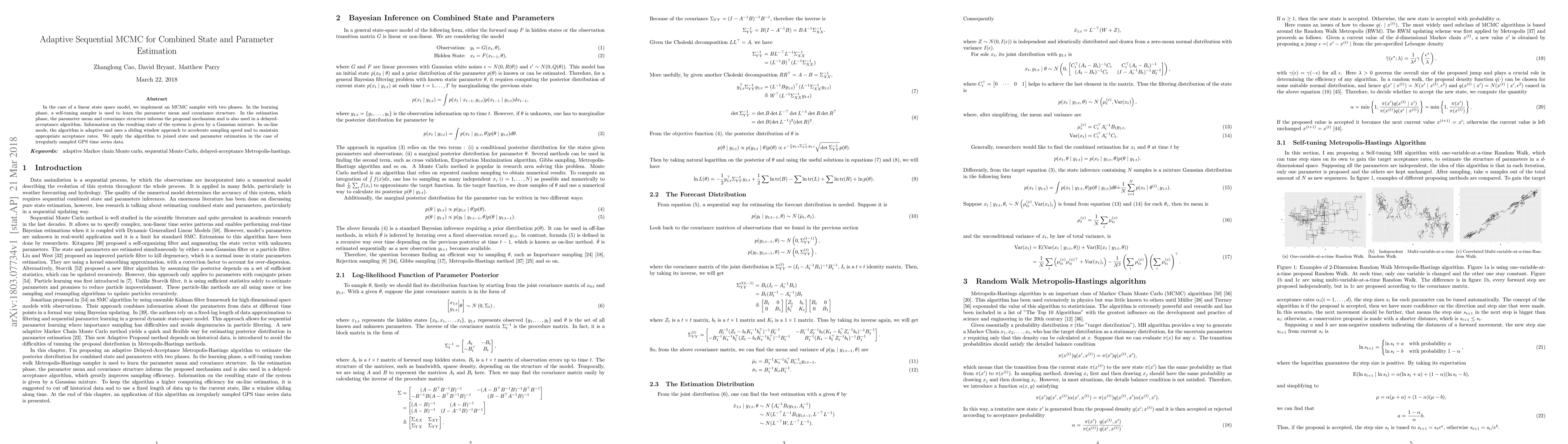 In the case of a linear state space model, we implement an MCMC sampler with two phases. In the learning phase, a self-tuning sampler is used to learn the parameter mean and covariance structure. In the estimation phase, the parameter mean and covariance structure informs the proposed mechanism and is also used in a delayed-acceptance algorithm. Information on the resulting state of the system is given by a Gaussian mixture. In on-line mode, the algorithm is adaptive and uses a sliding window approach to accelerate sampling speed and to maintain appropriate acceptance rates. We apply the algorithm to joined state and parameter estimation in the case of irregularly sampled GPS time series data.
