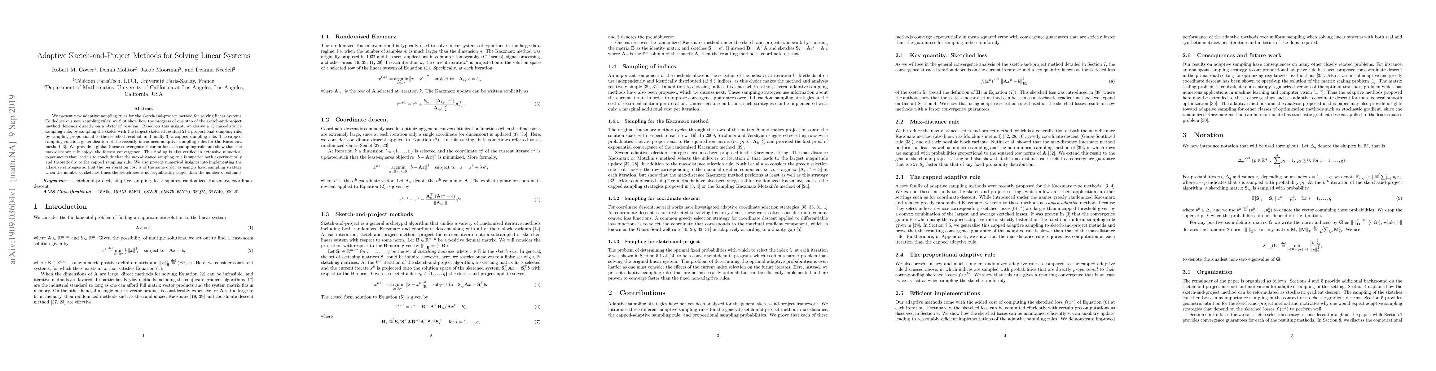 This paper introduces adaptive sampling rules for the sketch-and-project method to solve linear systems, deriving max-distance, proportional, and capped sampling strategies. The max-distance rule is shown to have the fastest convergence both theoretically and experimentally, while maintaining comparable per-iteration costs to fixed strategies.