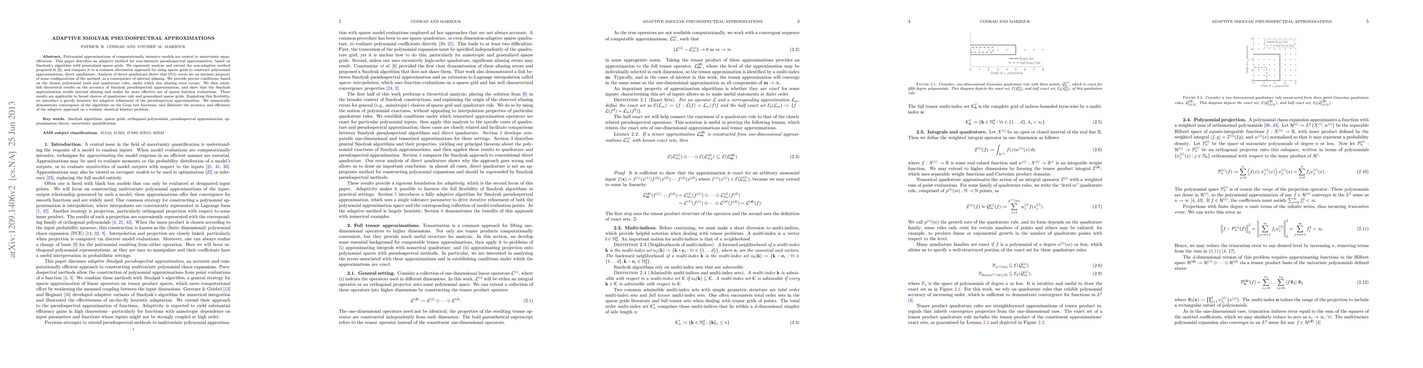 This paper presents an adaptive pseudospectral approximation method based on Smolyak's algorithm with generalized sparse grids, which avoids internal aliasing errors observed in direct quadrature methods. The adaptive heuristic demonstrates improved accuracy and efficiency on both test functions and a chemical kinetics problem.