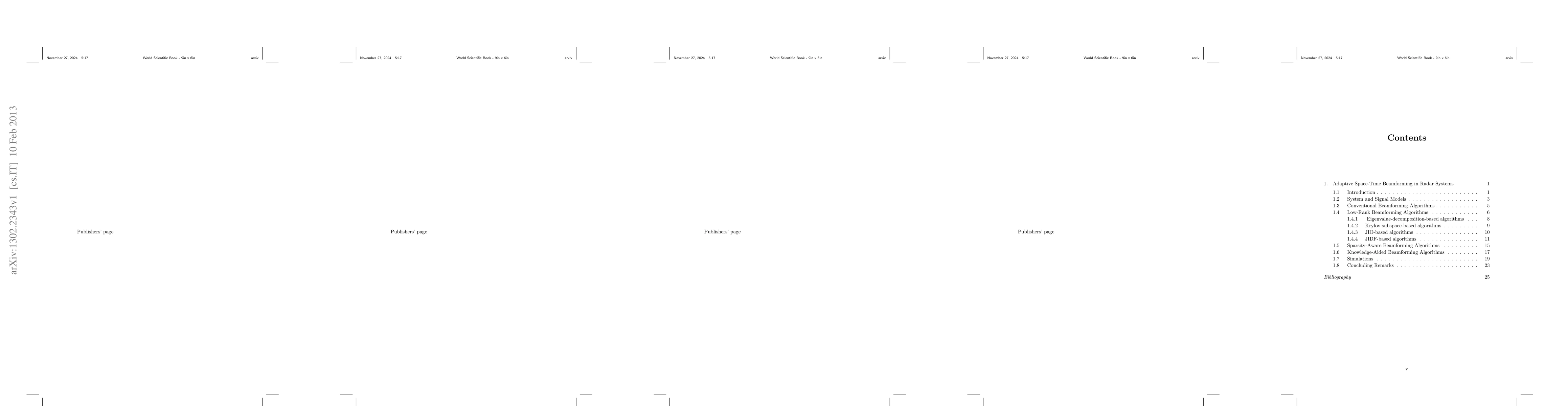 The goal of this chapter is to review the recent work and advances in the area of space-time beamforming algorithms and their application to radar systems. These systems include phased-array \cite{melvin} and multi-input multi-output (MIMO) radar systems \cite{haimo_08}, mono-static and bi-static radar systems and other configurations \cite{melvin}. Furthermore, this chapter also describes in detail some of the most successful space-time beamforming algorithms that exploit low-rank and sparsity properties as well as the use of prior-knowledge to improve the performance of STAP algorithms in radar systems.