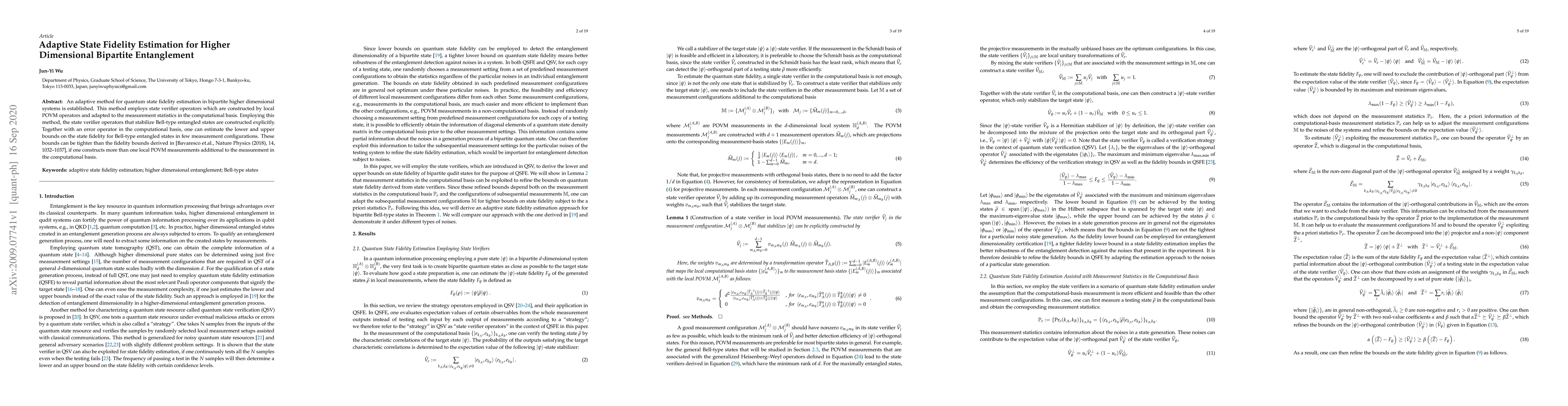 This paper proposes an adaptive method for estimating fidelity in higher dimensional bipartite quantum entanglement using state verifier operators constructed from local POVM operators. The method provides tighter fidelity bounds for Bell-type entangled states compared to previous methods, especially when multiple local POVM measurements are used.