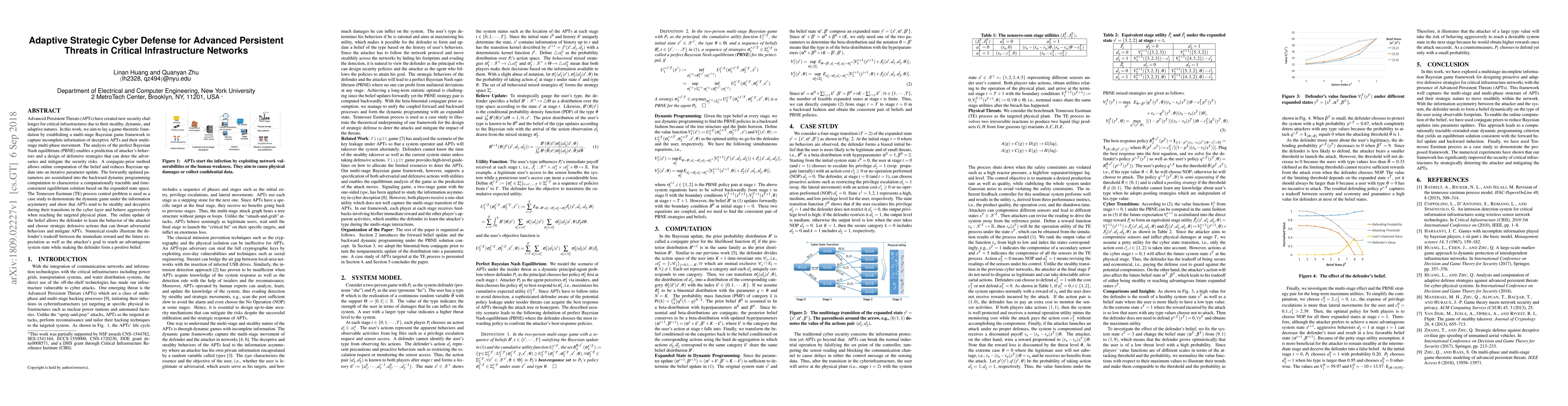 This paper develops a game-theoretic framework to strategically defend critical infrastructure networks against Advanced Persistent Threats using Bayesian dynamics and dynamic programming. The proposed method predicts attacker behavior and designs adaptive defensive strategies, demonstrated through the Tennessee Eastman process control problem.