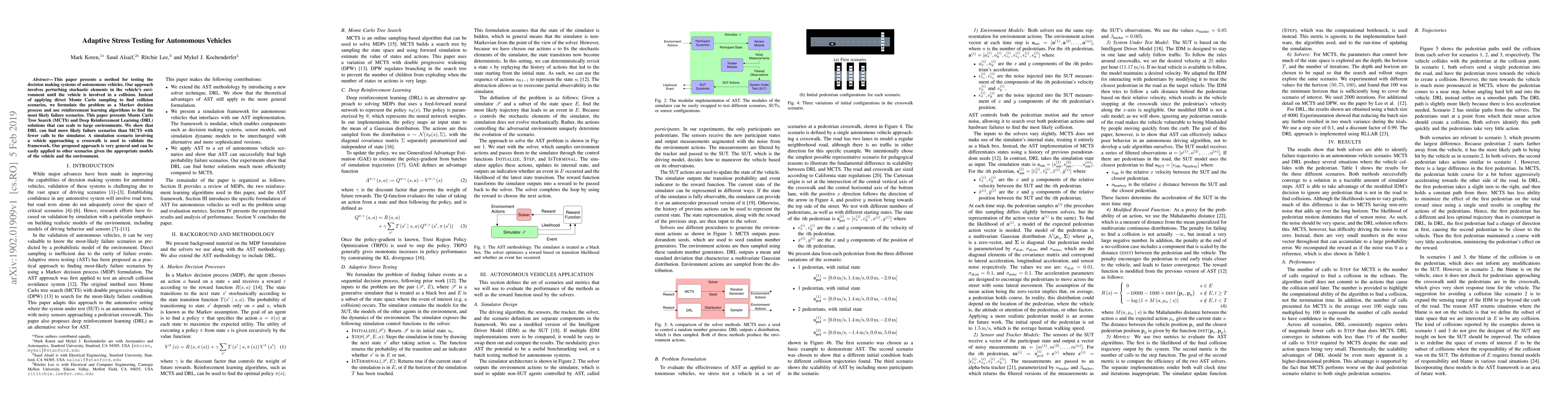 Researchers develop an adaptive stress testing method for autonomous vehicles using reinforcement learning algorithms to identify most likely failure scenarios. The approach uses a Markov decision process and can scale to large environments, offering a general solution for testing autonomous vehicle decision-making systems.