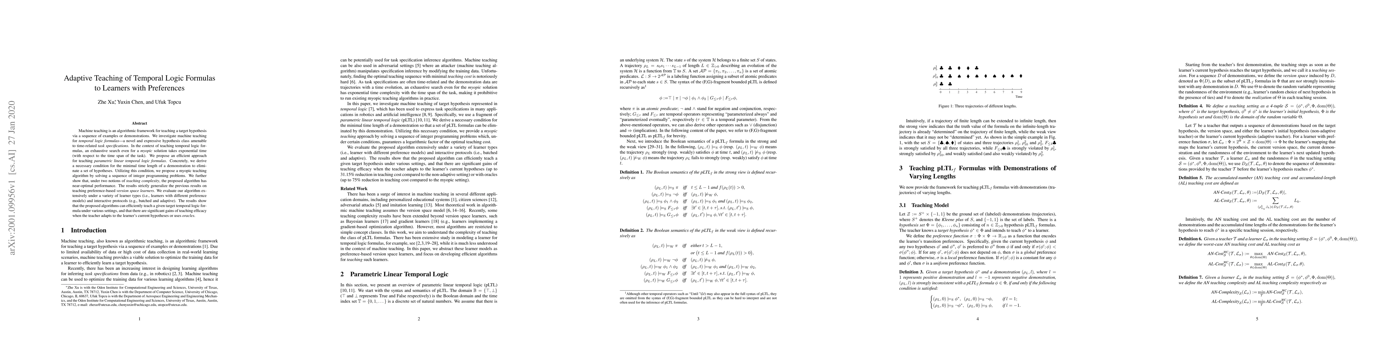 This paper proposes an efficient algorithm for teaching parametric linear temporal logic formulas to learners with preferences, leveraging a necessary condition for minimal demonstration length. The algorithm achieves near-optimal performance under various teaching complexities and outperforms previous methods, especially when adapting to learners' hypotheses.