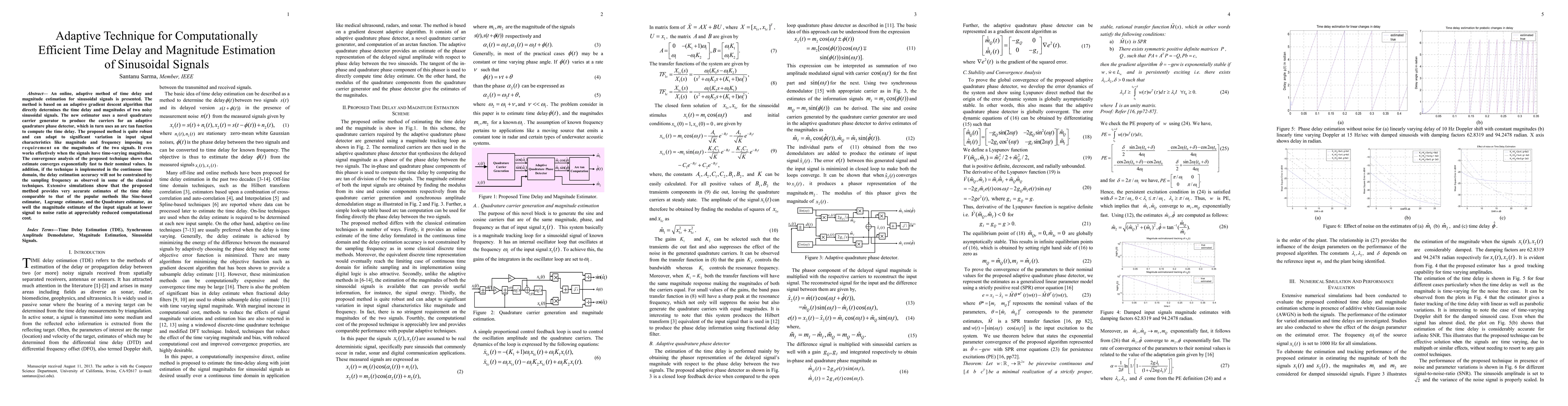 This paper introduces an adaptive gradient descent algorithm for estimating the time delay and magnitude of sinusoidal signals, employing a novel quadrature carrier generator. The method demonstrates robust performance under varying signal characteristics and achieves accurate estimates with lower computational costs compared to traditional techniques.