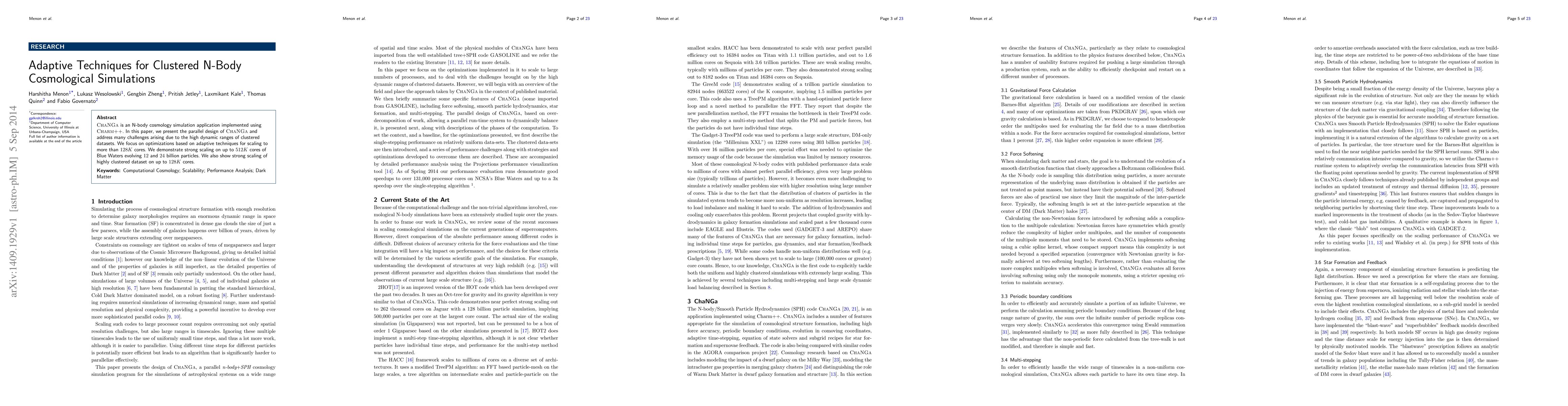 This paper details the parallel design of ChaNGa, an N-body cosmology simulation tool, emphasizing adaptive techniques to optimize performance for large-scale simulations. The study demonstrates strong scaling on up to 512K cores, showcasing its capability to handle highly clustered datasets efficiently.