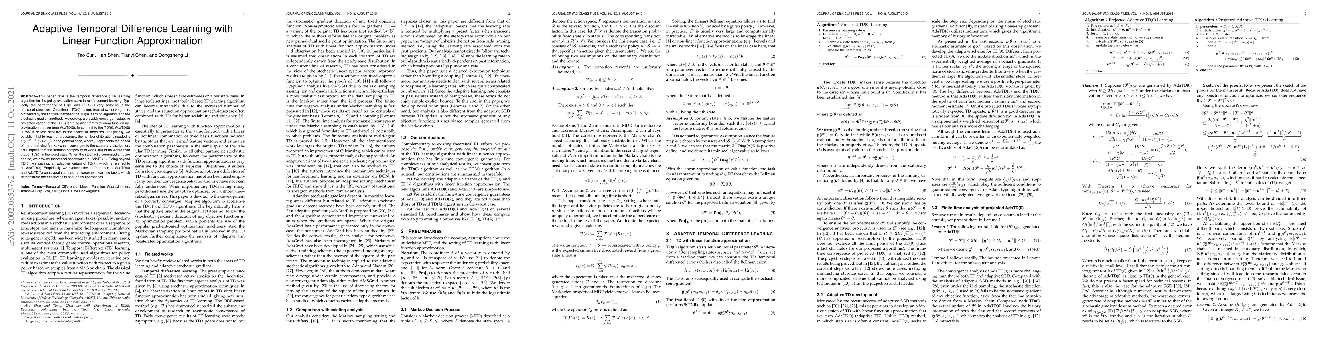 This paper introduces adaptive temporal difference learning algorithms, AdaTD(0) and AdaTD($\lambda$), which improve robustness and convergence speed over traditional TD(0) and TD($\lambda$) by adaptively adjusting step sizes. Theoretical analysis shows that the new methods maintain comparable iteration complexity while providing practical benefits in reinforcement learning tasks.