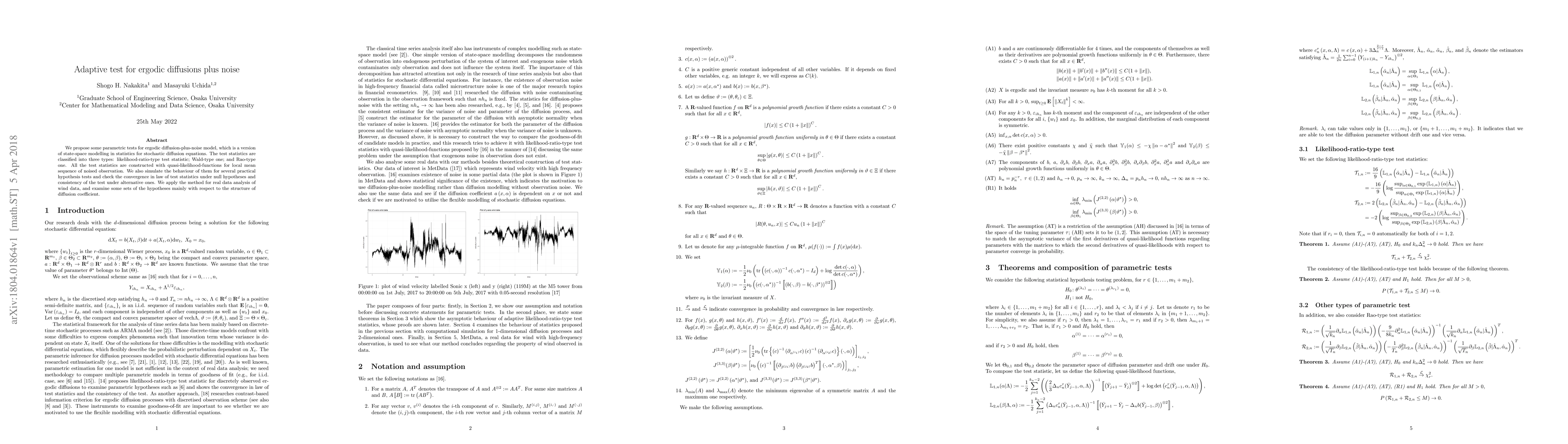 This paper proposes parametric tests for an ergodic diffusion-plus-noise model, utilizing likelihood-ratio, Wald, and Rao test statistics based on quasi-likelihood functions. The performance of these tests is evaluated through simulations and applied to real wind data to analyze the diffusion coefficient structure.