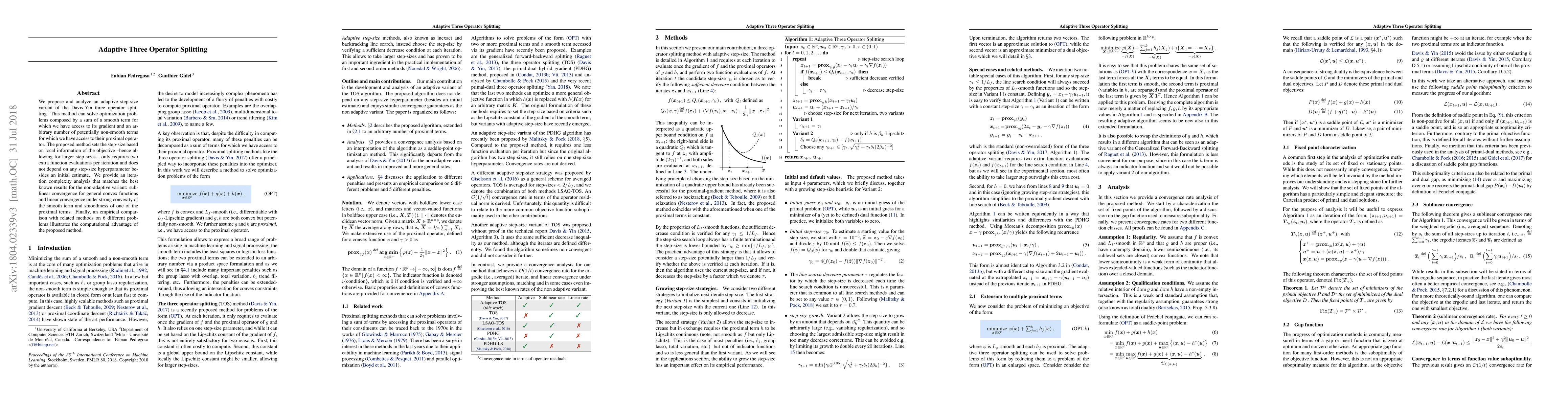 This paper introduces an adaptive step-size variant of the Davis-Yin three operator splitting method for solving optimization problems with smooth and non-smooth terms. The adaptive method allows for larger step-sizes based on local objective information, requiring only two extra function evaluations per iteration and achieving comparable convergence rates to the non-adaptive variant.