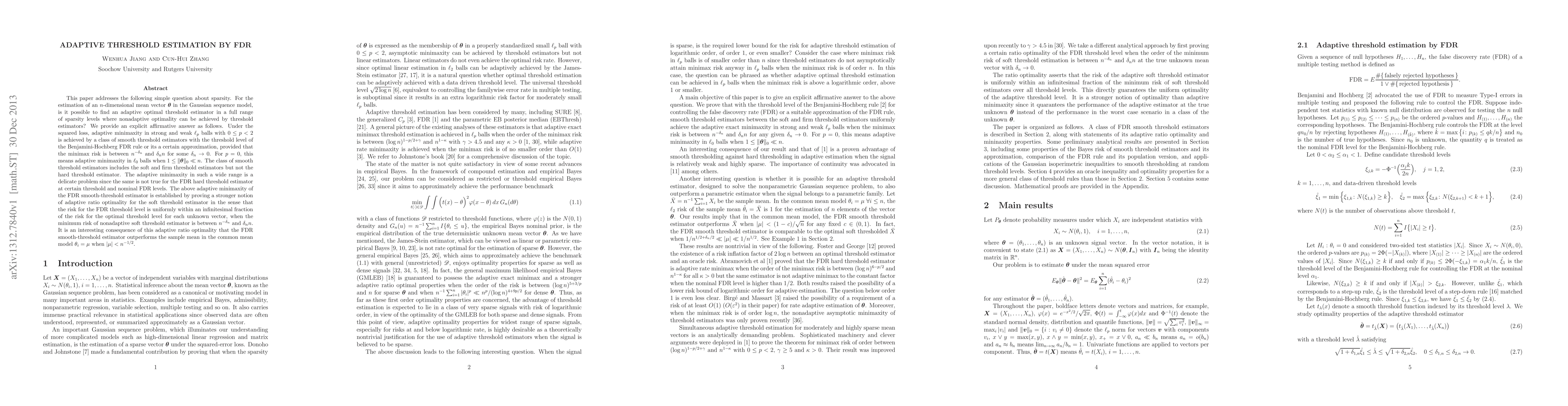 threshold and nominal FDR levels. The above adaptive minimaxity of the FDR